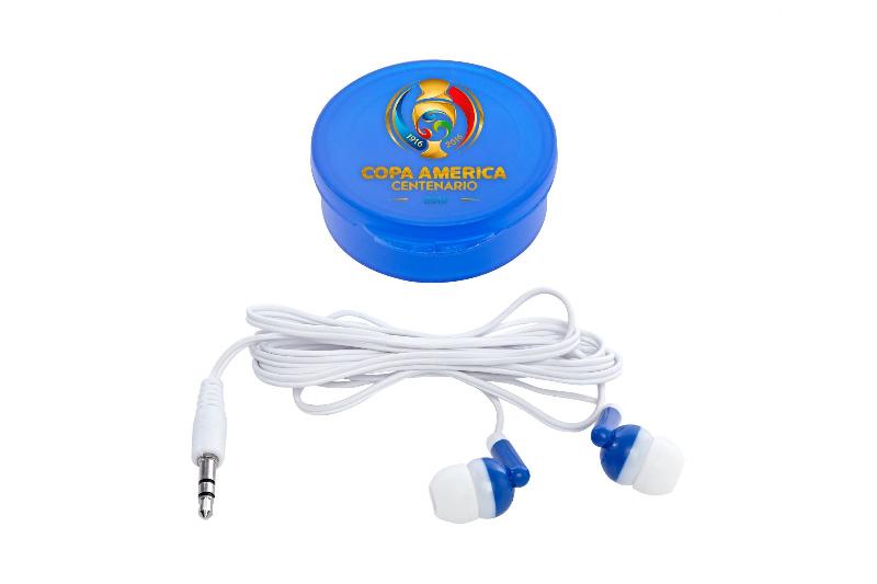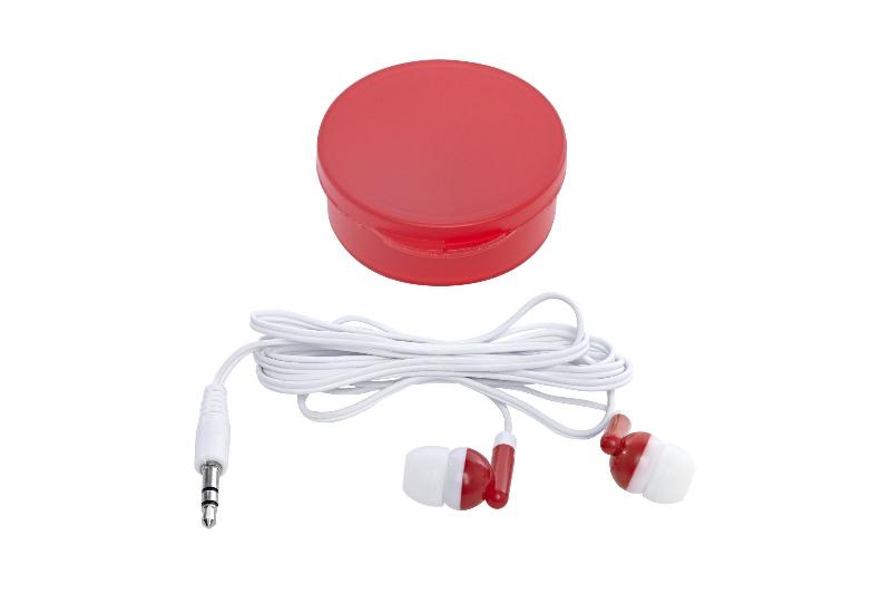 AUDÍFONO IN BOX . Audífonos en estuche circular con auriculares de 117 cm aprox.