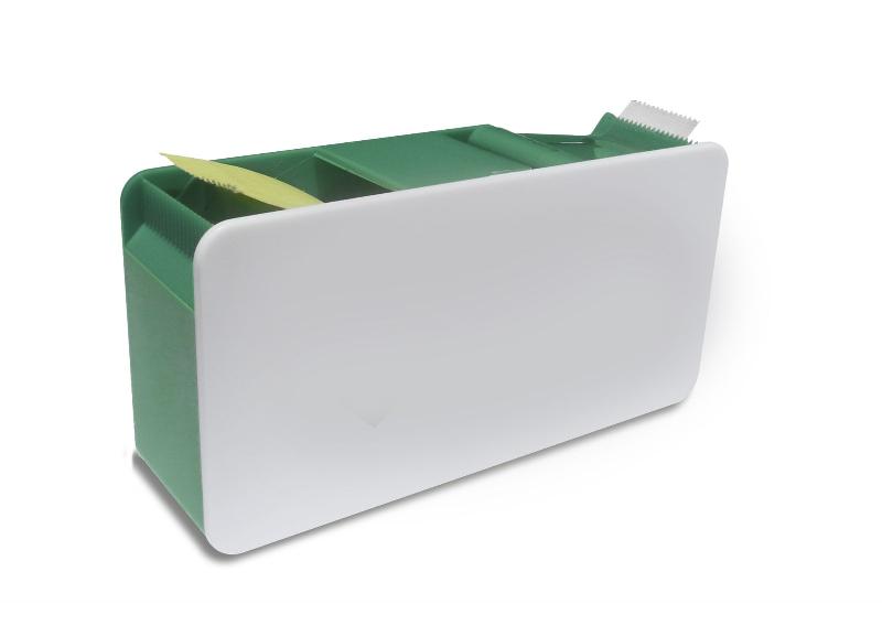DISPENSER DE PAPELES Y CINTA ADHESIVA Dispenser para cinta adhesiva y cinta de papel autoadhesivo.