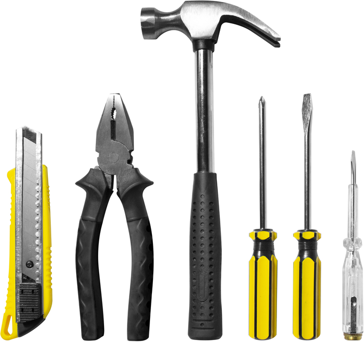 SET DE HERRAMIENTAS "MEISSA" Set de herramientas en estuche con cierre y creamallera. Contiene 11 piezas, todas sujetadas con elastico anti deslizante: Cuter, pinza alicate, martillo, 2 destornilladores de diferentes puntas (punta plana y punta phillps), un destornillador tester y 5 llaves allen. Presentación en caja de regalo. Familia de 5 llaves Allen: acero 45# de espesor Cuchillo de arte: calidad de acero 60 Alicate con mango negro de 7 "": hierro fundido pulido Pluma de prueba doméstica: 45 # acero niquelado Martillo: pulido de hierro fundido Destornillador: acero al carbono 45#