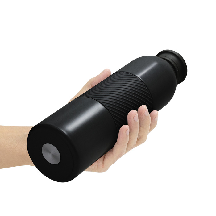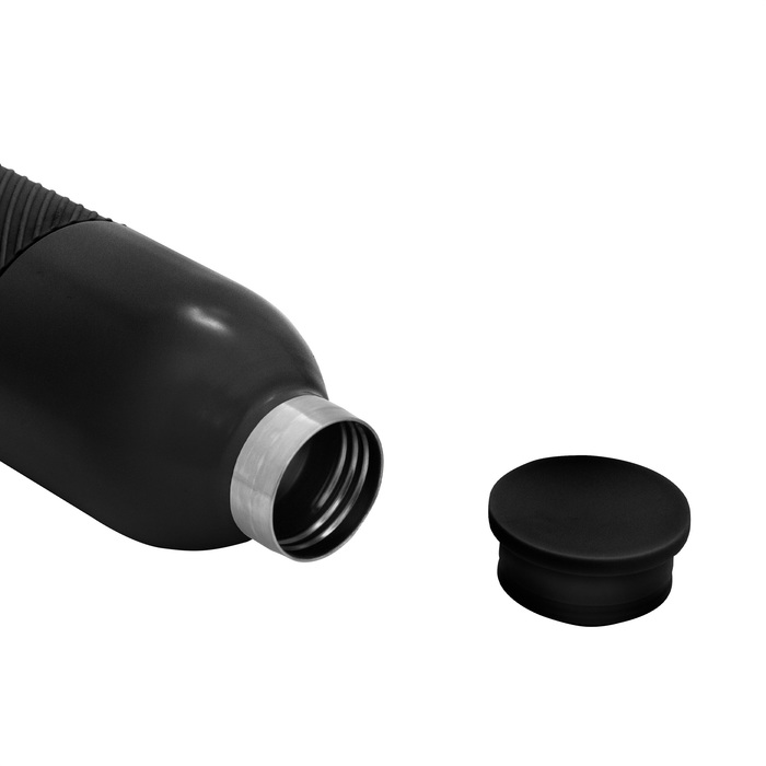 Botella térmica "GRIP" Botella doble pared, sellada al vacío. Interior en acero 304 y exterior en acero 201. Grip de silicona texturado para mejor agarre. Pintura acabado mate. Tapa de polipropileno y acero inoxidable 201. Presentación en caja de regalo kraft.