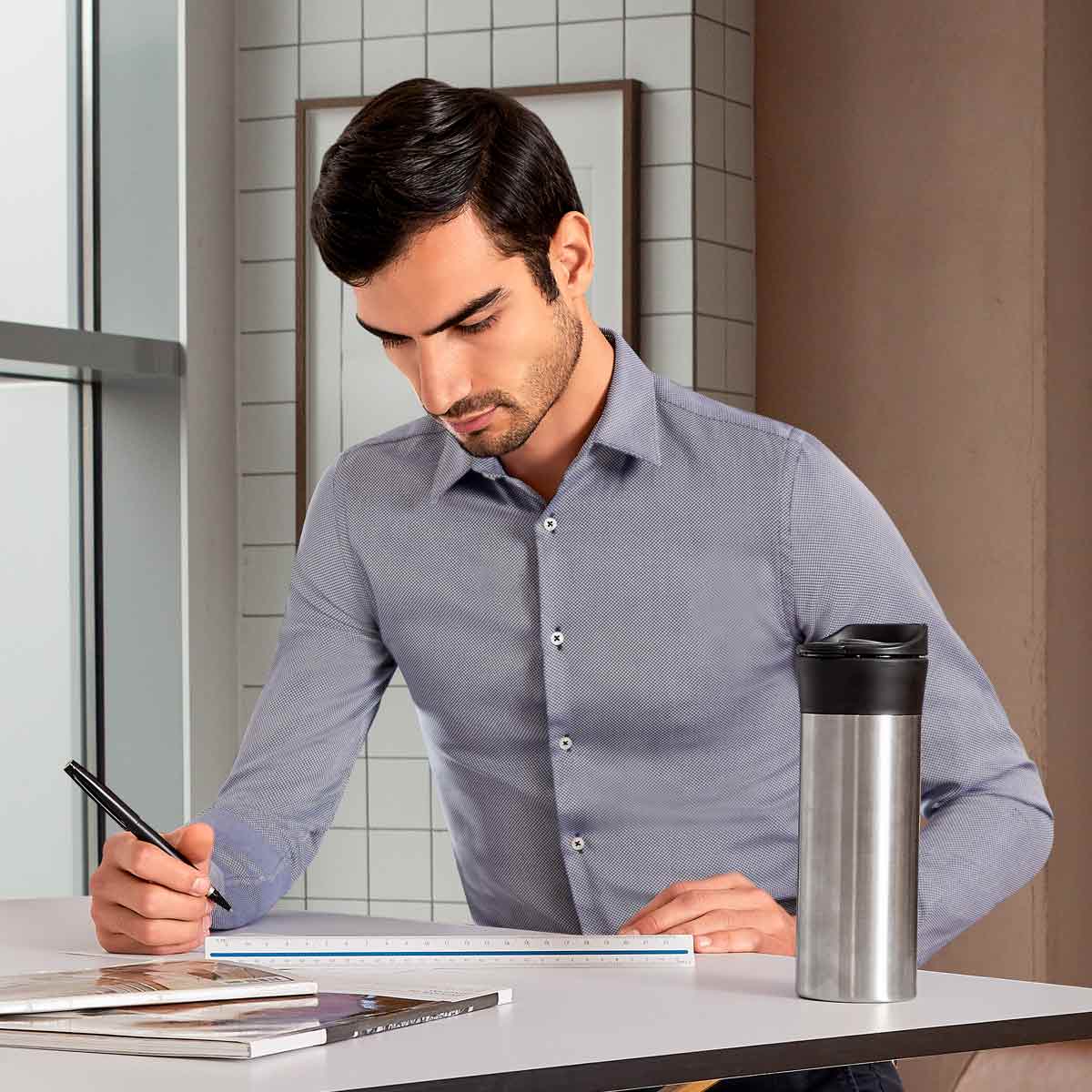 MUG "UMA" Doble Pared. Interior de plástico y exterior acero inoxidable 201. Pi...