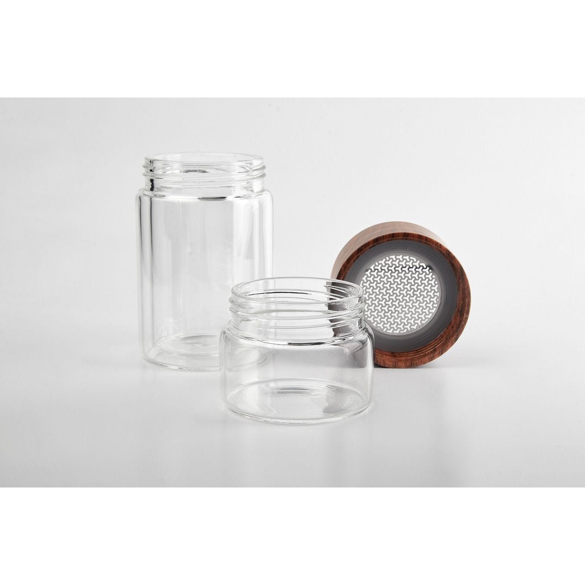 TERMO DE VIDRIO NANKIN - Termo de vidrio de doble pared para bebidas calientes y frías. Tapa de rosca que evita derrames. Contiene una separación de infusor removible para té de acero inoxidable. Su colador y doble vaso permiten preparar infusiones. Incluye caja individual.