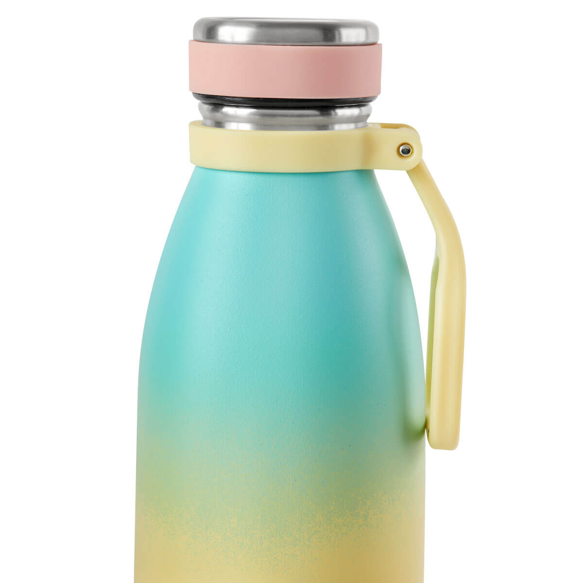 TERMO MANDALA - Doble pared. Cerrado al vacío. Pared interna y externa acero inoxidable. Terminado rugoso. Tapa de rosca con banda de silicón. Cuenta con asa de plástico plegable. Mantiene temperatura caliente 8 hrs y temperatura fría 12 hrs aproximadamente. Incluye caja individual.