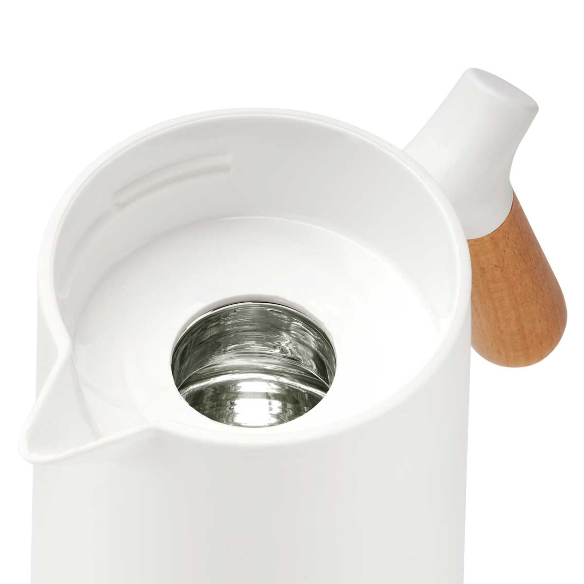 JARRA TÉRMICA SHALÁ - Jarra térmica doble pared. Interior de vidrio y exterior de plástico. Tapa con botón dispensador y asa de bambú. Base removible con sistema de rosca que permite retirar fácilmente el interior para una mejor limpieza. Mantiene temperatura caliente y fría 6 hrs. Incluye caja individual.