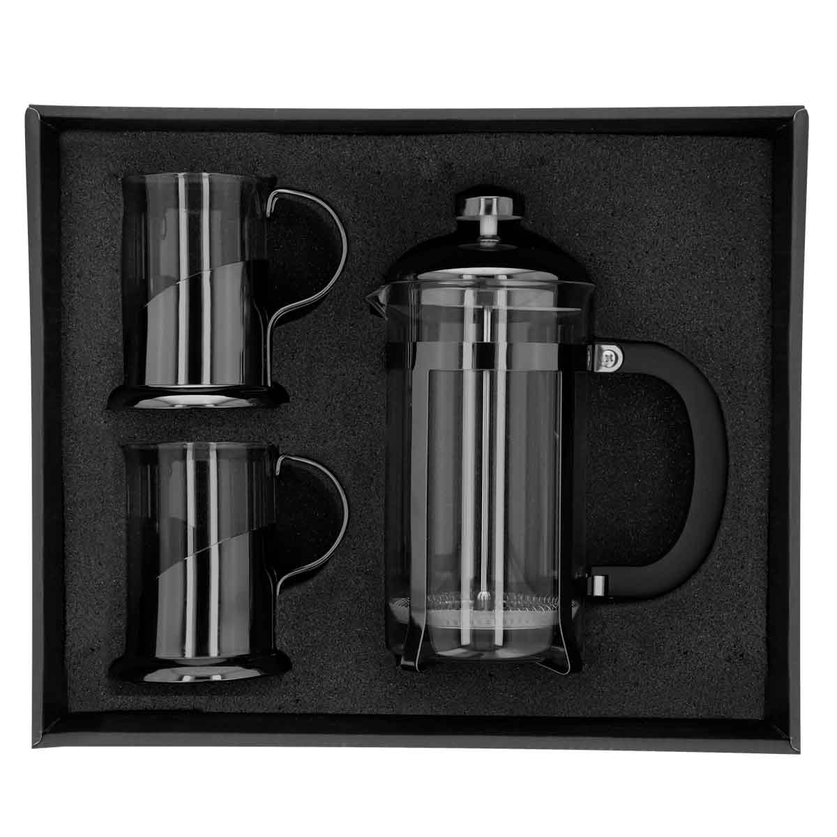 SET CAFETERO AJACCIO - Set de prensa francesa con 2 tazas. Incluye caja de regalo.