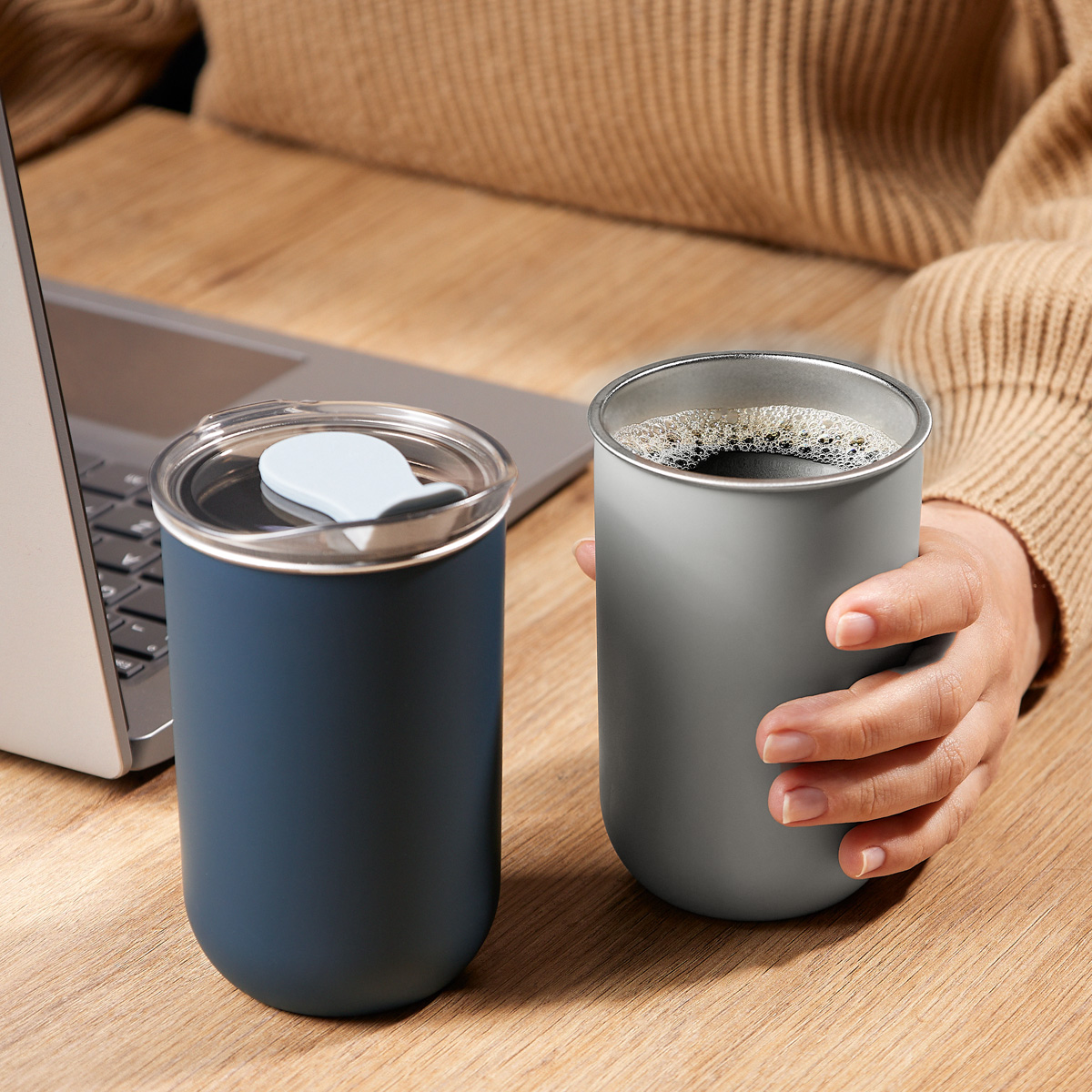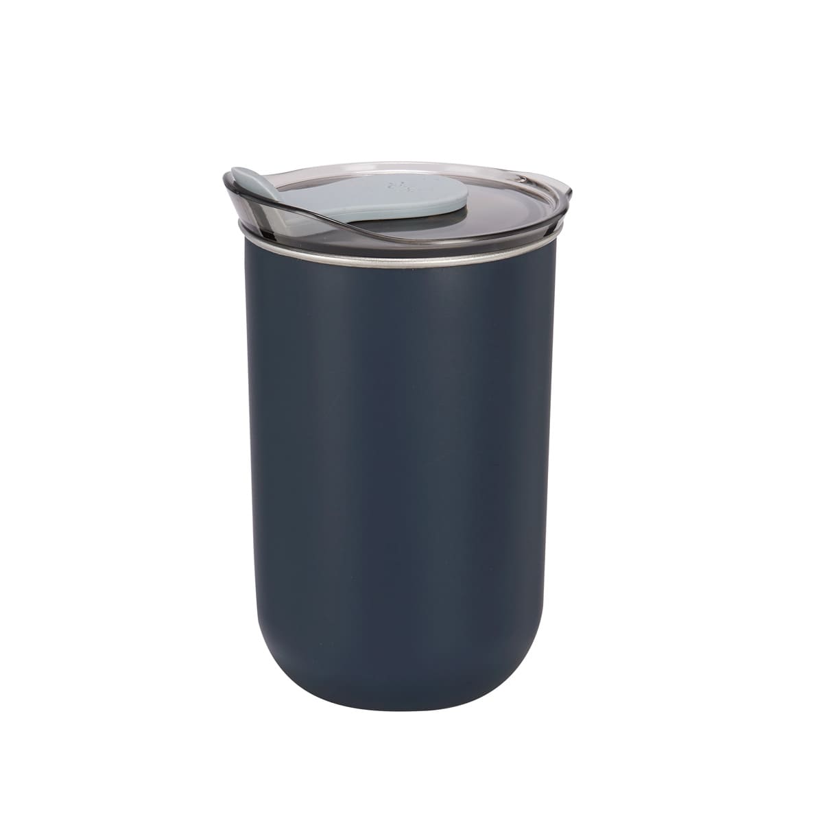 TERMO LATE - Doble pared. Pared interna de acero inoxidable y externa de plástico. Tapa de plástico con sistema push y sobretapa de silicón movible. Incluye caja individual.