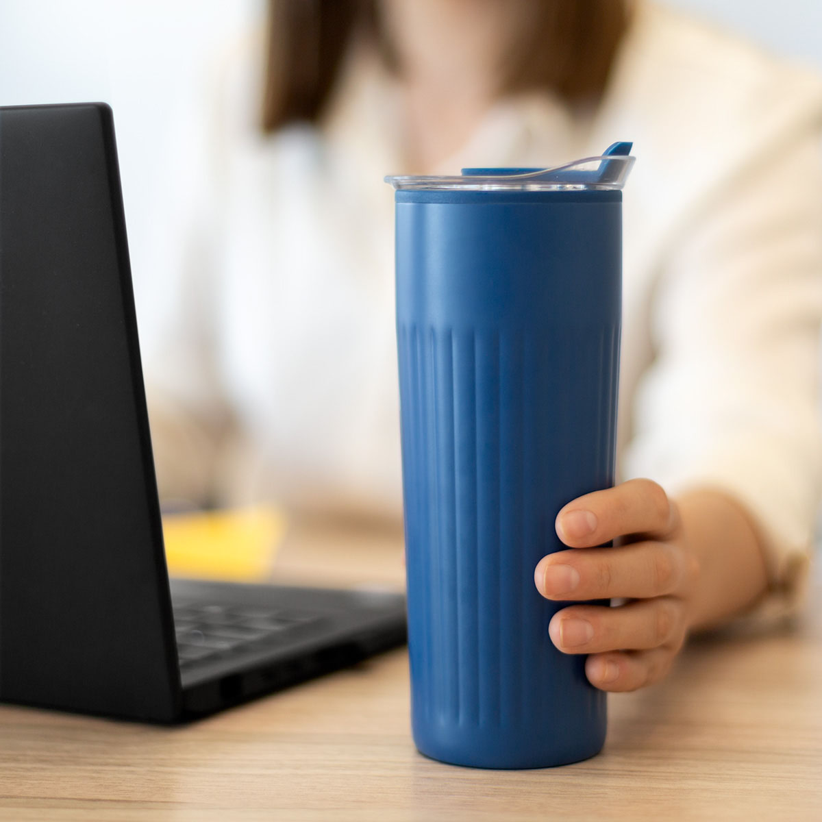 TERMO PIRLO - Doble pared. Pared interna de plástico, pared externa de acero inoxidable. Tapa de plástico con sistema de push. Sobre tapa de silicón movible. Incluye caja individual