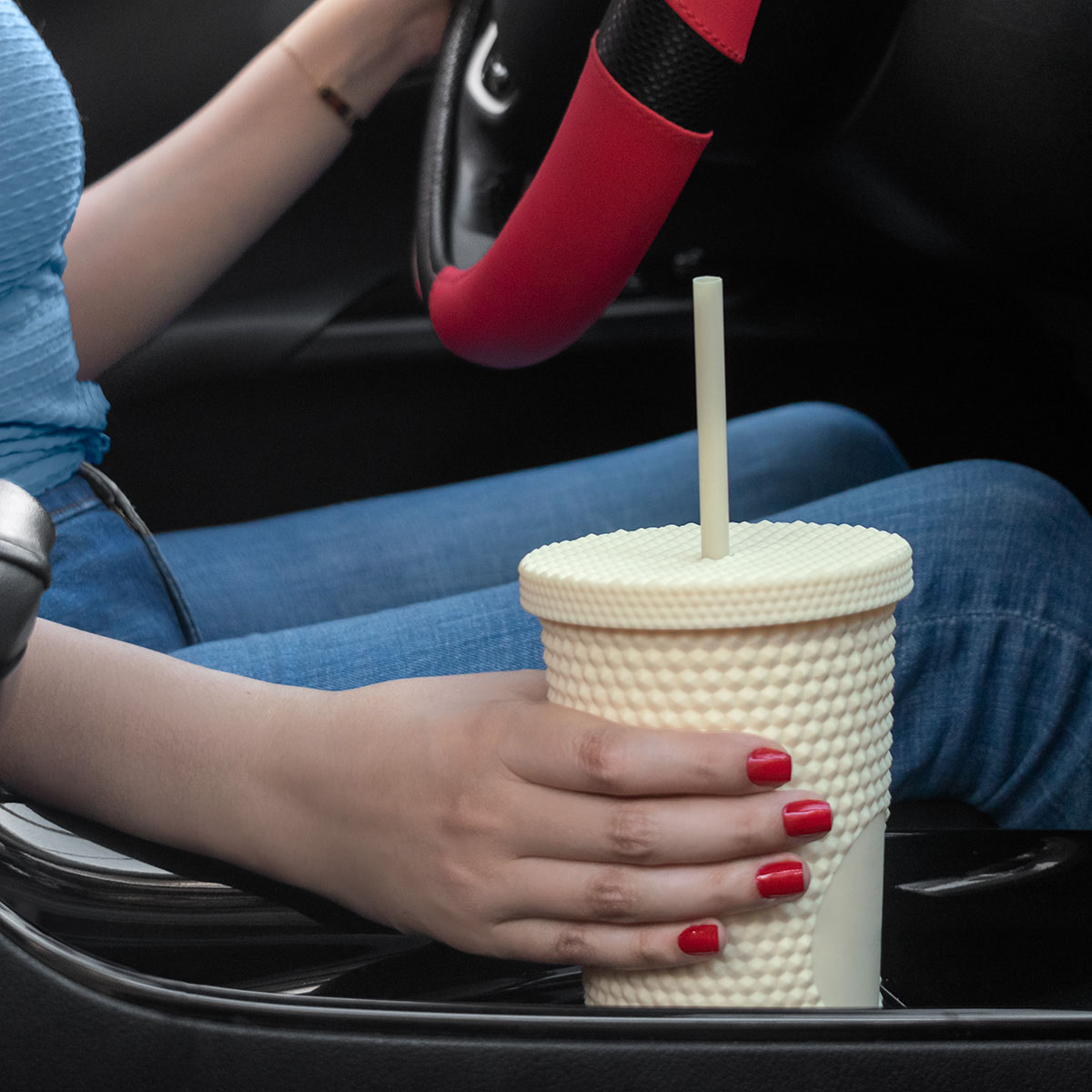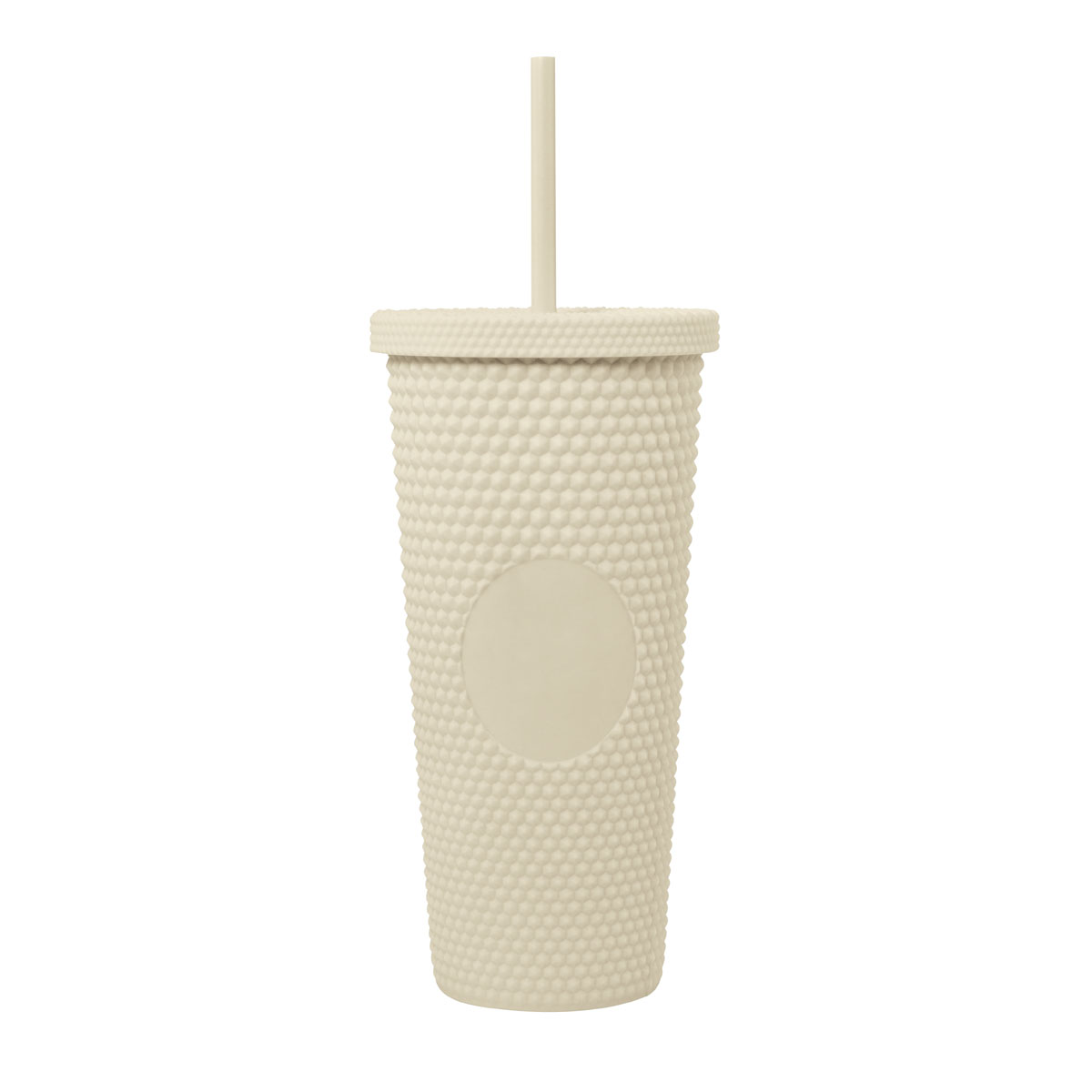 VASO ELMAS - Doble pared. Pared interna y externa de plástico. Tapa de plástico con sistema de rosca. Incluye popote. Cuerpo y tapa con textura diamante y terminado tipo rubber. Capacidad 22 Oz. Base de 6.8 cm de diámetro. Caja individual incluida.