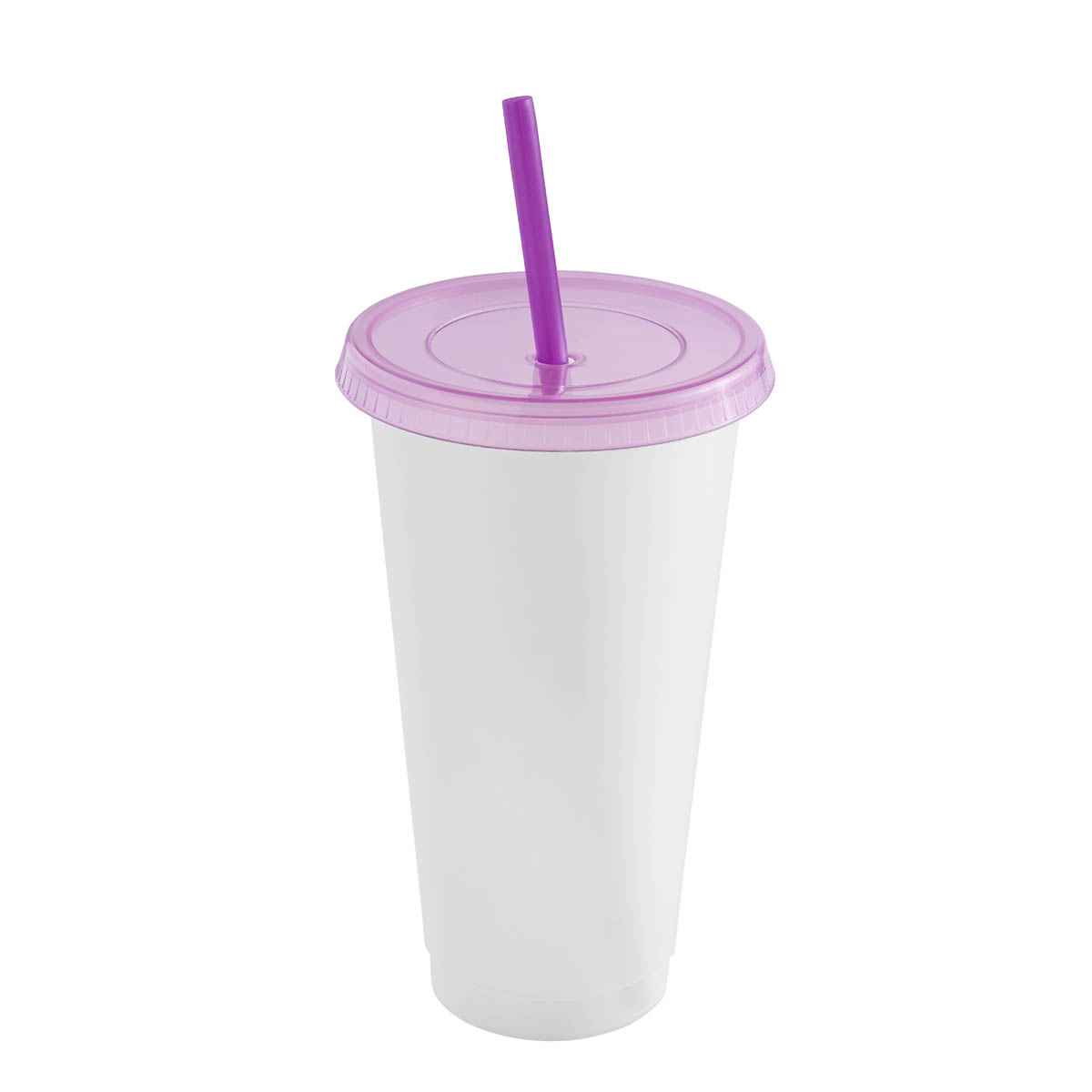 VASO BLUR - Vaso de plástico de una pared. Añade fantasía y diversión, con este vaso que cambia de color al verter bebidas frías. Su tapa y popote, coinciden con el tono que el vaso revelará al enfriarse, dando como resultado, un conjunto armonioso y divertido. Perfecto para quienes buscan una experiencia refrescante y visualmente atractiva en cada bebida. Capacidad 27 Oz. Base de 6.4 cm.