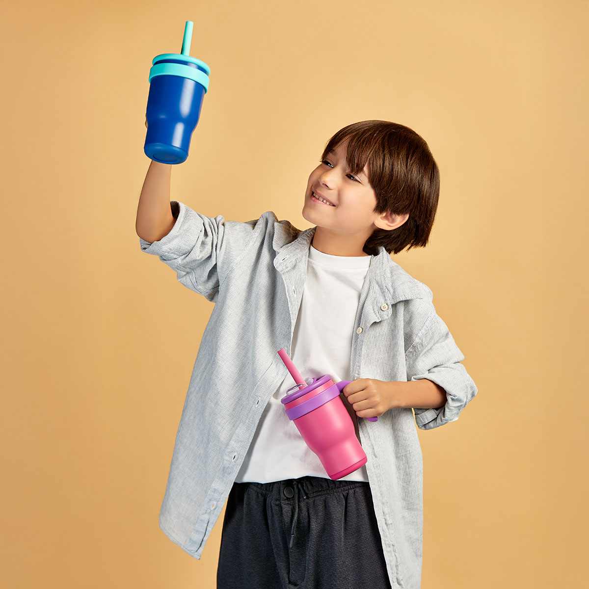 TERMO ANTALL - Termo doble pared. Cerrado al vacío. Pared interna y externa de acero inoxidable. Tapa de plástico con cierre de rosca que le aporta mayor seguridad. Cuenta con dos funcionalidades en la tapa, boquilla para beber con sobre tapa push y ranura para popote con sobre tapa adicional. Popote con boquilla de silicón, avanzado sistema de cierre anti derrames y asa de plástico. Su práctico tamaño, te permitirá transportarlo fácilmente a cualquier lugar. Ideal para niños y adultos. Mantiene temperatura caliente 6 hrs y fría 8 hrs. Capacidad de 15 Oz. Base de 6.5 cm de diámetro. Incluye cuerpo con terminado rugoso y caja individual.