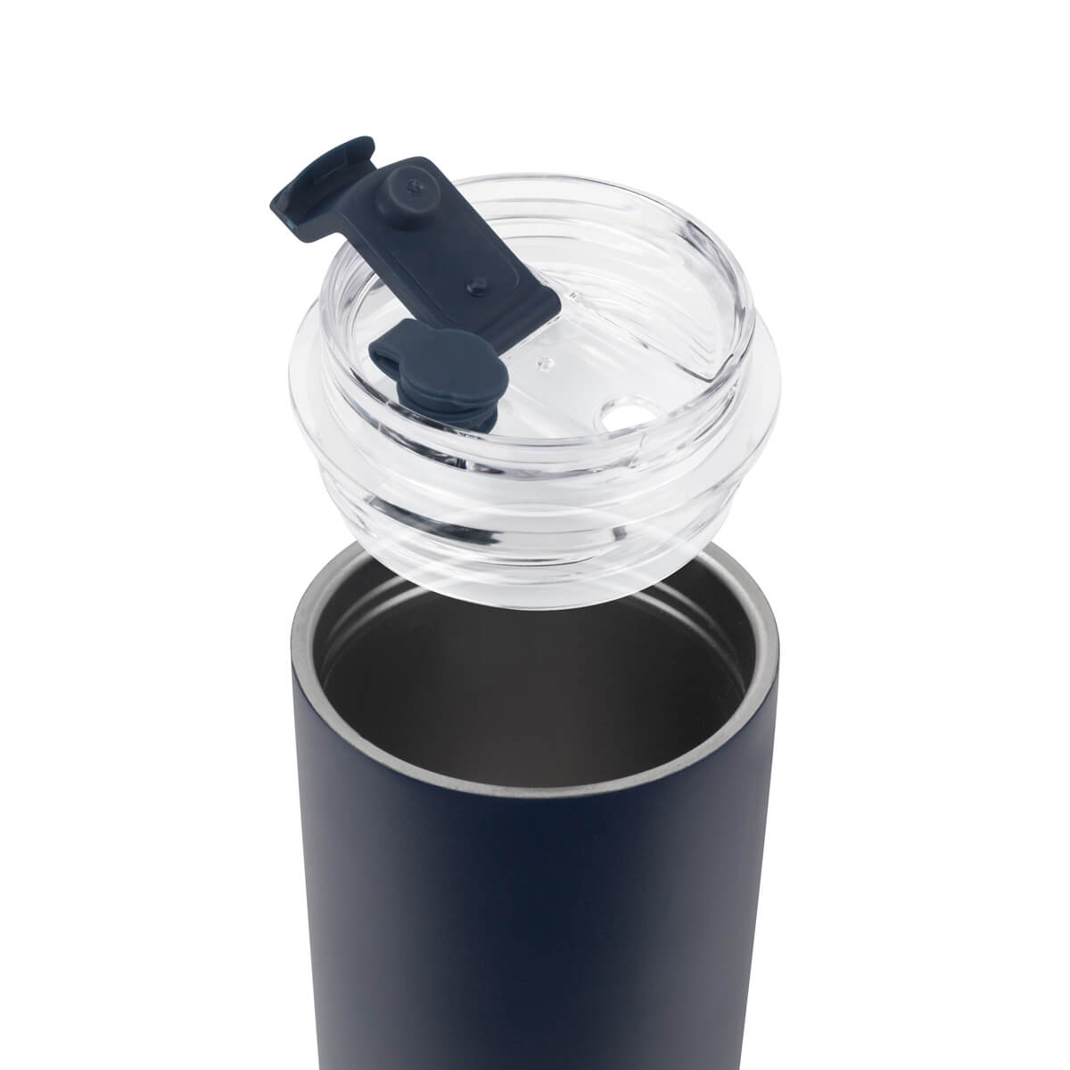 TERMO LATA FORO ROJO. Vaso térmico con acabado mate, tiene tapa transparente de...