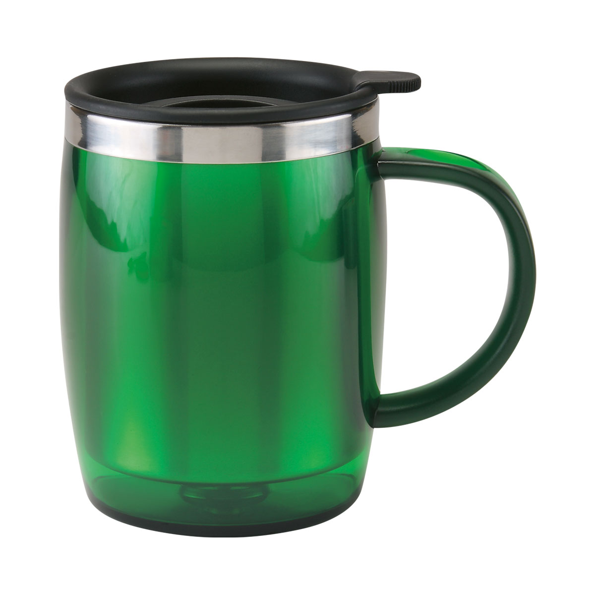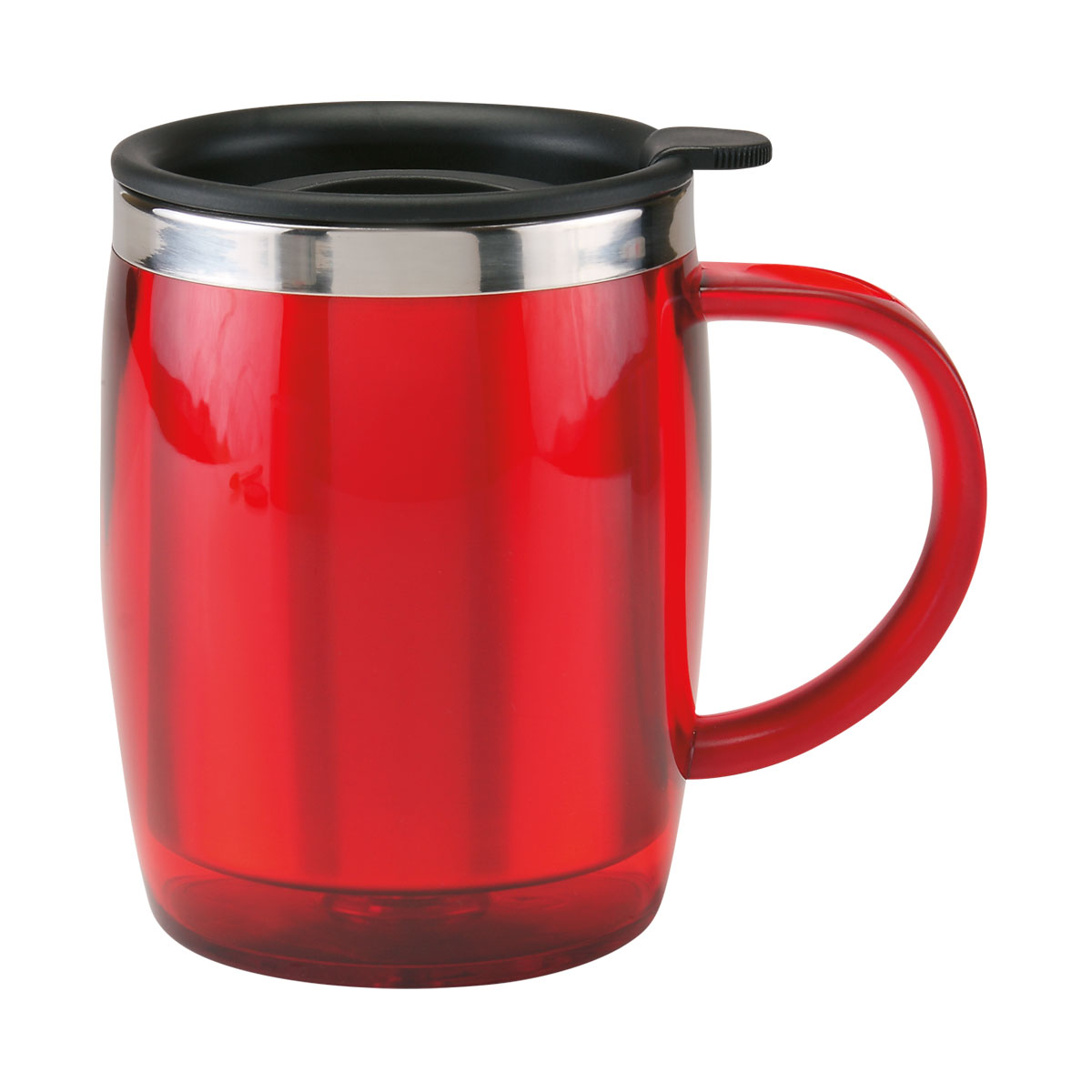 TAZA TÉRMICA BURGOS - Doble pared. Pared interna de acero inoxidable y externa de plástico. Incluye válvula de seguridad giratoria con tapa de presión. Incluye caja individual. No usar en microondas ni lavavajillas.