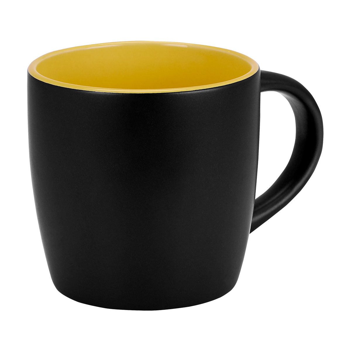 TAZA ATZIRI - Taza de cerámica interior de color y exterior negro. Terminando mate. Venta caja cerrada de 36 piezas.