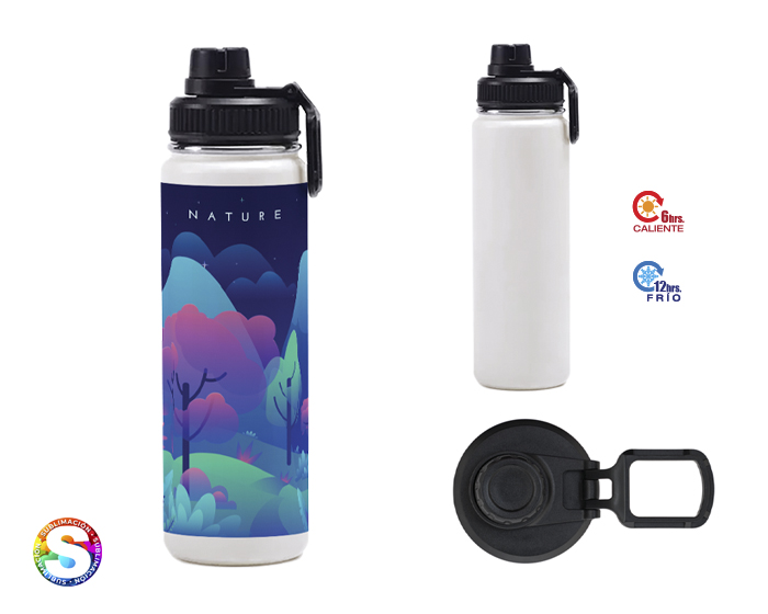 TERMO CALIFORNIA ROYAL 600 ML ACERO DOBLE DEPORTIVO TIPO BOTELLA CON AGARRADERA ...