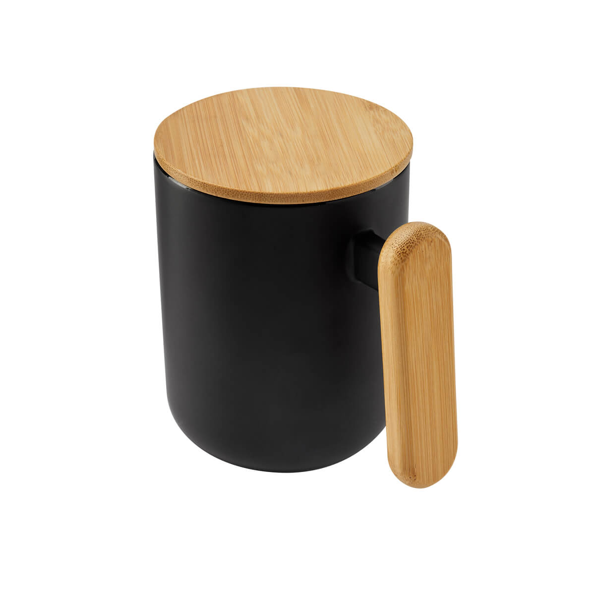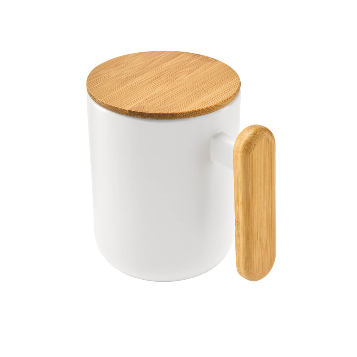 TAZA HANOI - Taza de cerámica terminado mate. Incluye asa y tapa de bambú. El bambú es un producto natural el cual puede presentar variaciones en tonalidades y vetas.