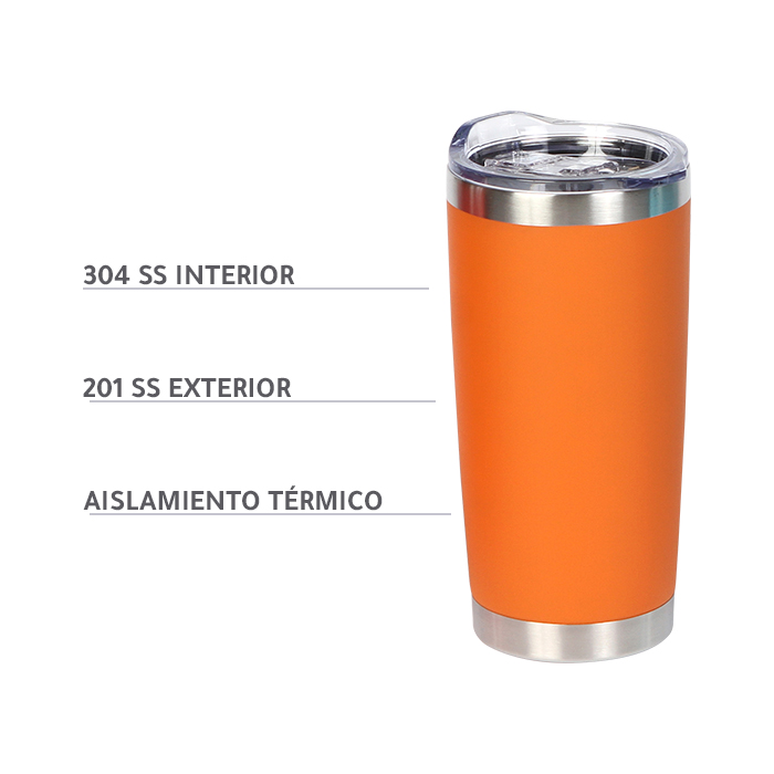 Vaso Queens. - Termo de acero inoxidable doble pared con tapa deslizable de plástico transparente, fabricado en materiales de grado alimenticio, mantiene bebidas frías o calientes por un largo tiempo, no usar en microondas, capacidad de 590 ml (20 oz). Incluye caja de cartón individual.