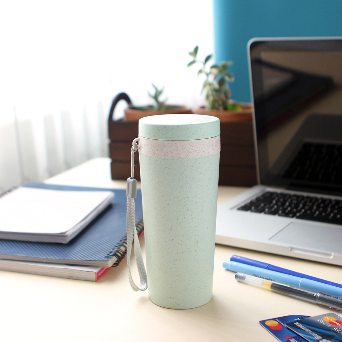 Termo Viseu. - Termo doble pared fabricado en material Ecológico (Fibra de Trigo) con tapa de polipropileno con correa para fácil transportación. Capacidad de 300 ml. Producto biodegradable.