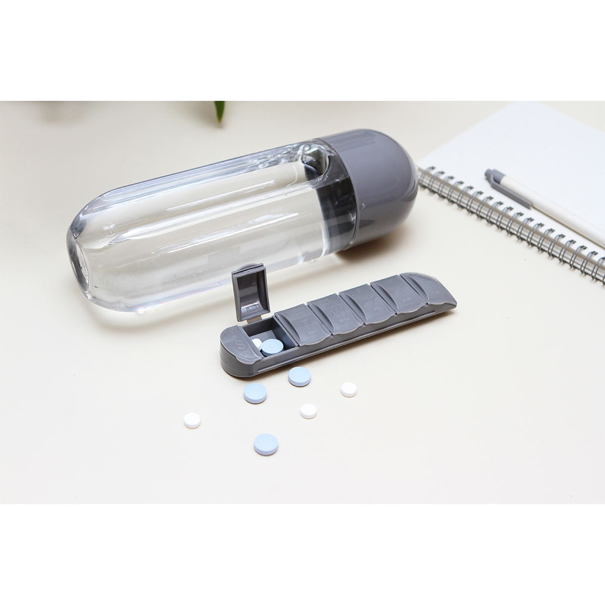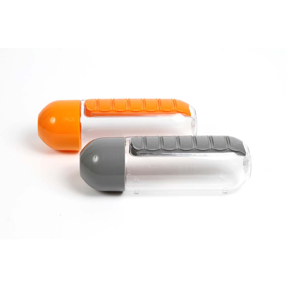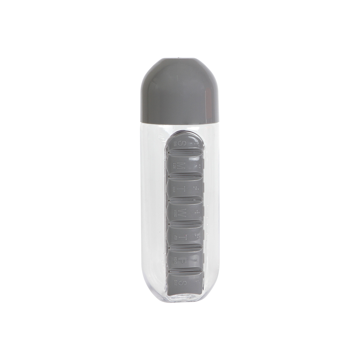 Botella Naha. - Botella fabricada en Tritan, pastillero integrado con 7 compartimentos, uno para cada día de la semana, capacidad de 600 ml (20 oz).