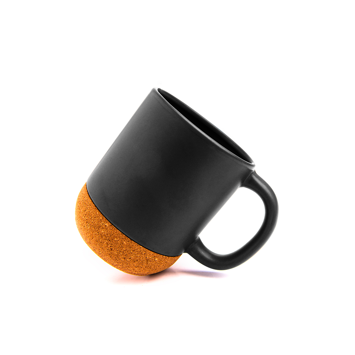 Taza Manado. - Taza de cerámica con base de corcho aislado extraíble y tapa deslizable de PP (polipropileno). Ideal para té o café. Capacidad 400 ml. Incluye caja de cartón individual.