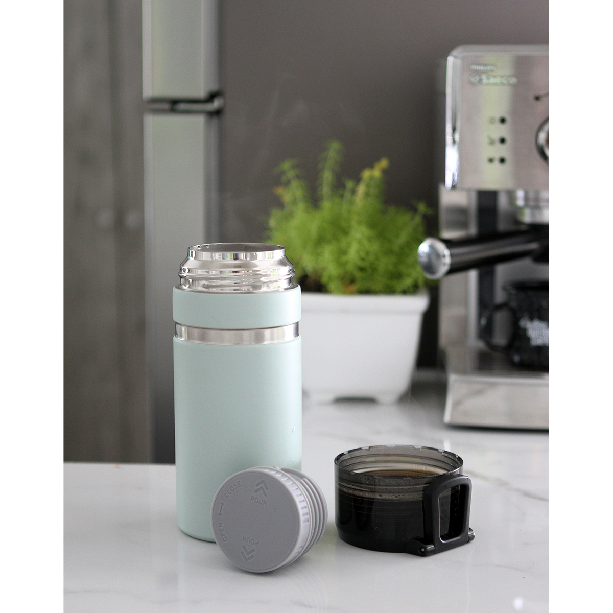 Taza Dávao. - Taza térmica de en acero inoxidable doble pared, con asa y tapa ...