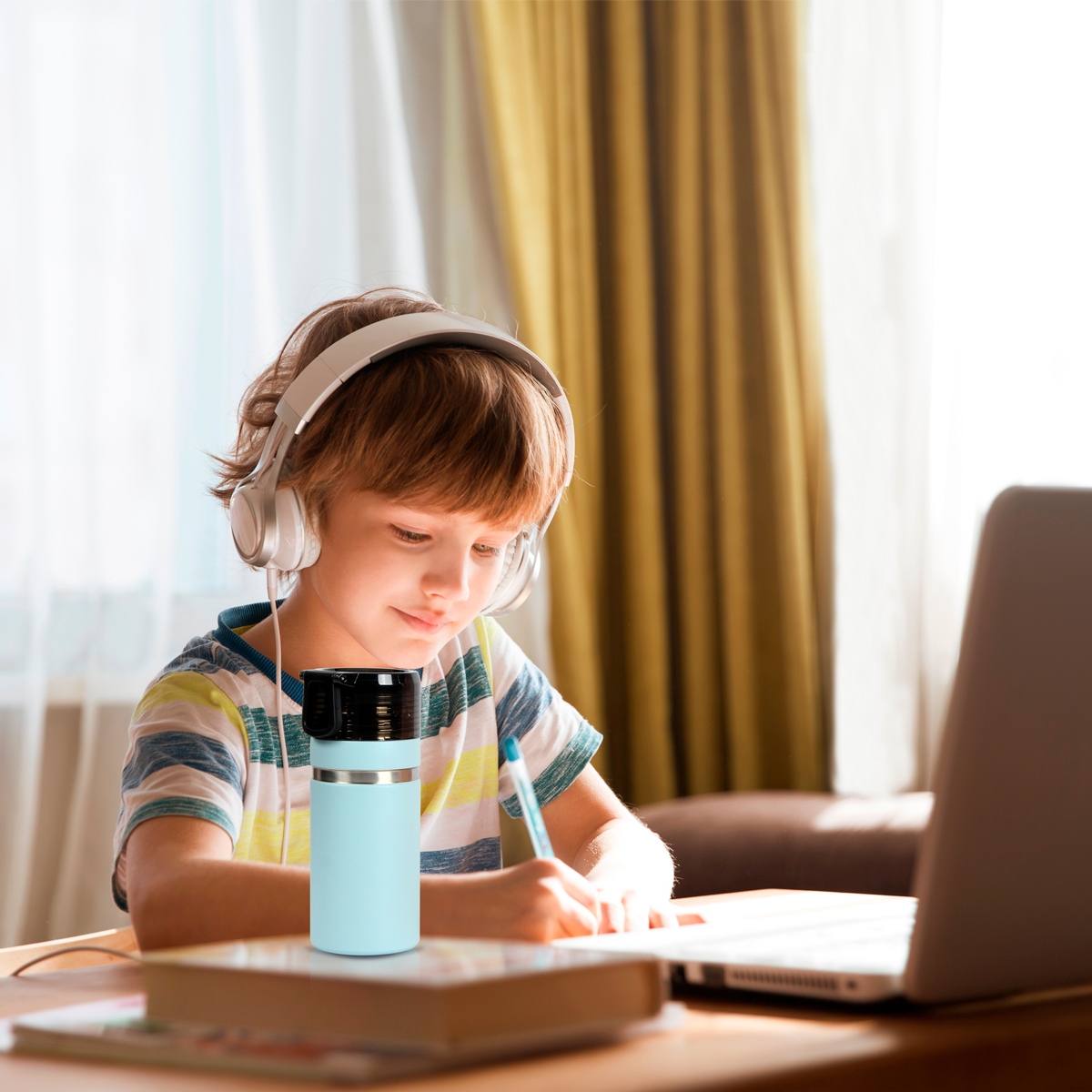 Termo Dalvík. - Termo de acero inoxidable doble pared con tapa y asa de plástico. Fabricado en materiales de grado alimenticio, mantiene bebidas frías o calientes por un largo tiempo. No usar en microondas.  Capacidad de 500 ml. Incluye caja de cartón individual.