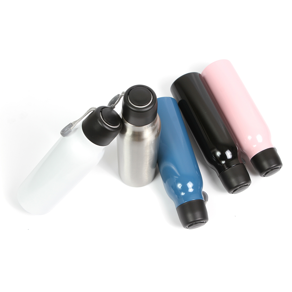Termo Ulán. - Termo de acero inoxidable doble pared acabado brillante, con tapa de plástico y correa textil. Fabricado en materiales de grado alimenticio, mantiene bebidas frías o calientes por un largo tiempo. No usar en microondas. Capacidad de 500 ml. Incluye caja de cartón individual.