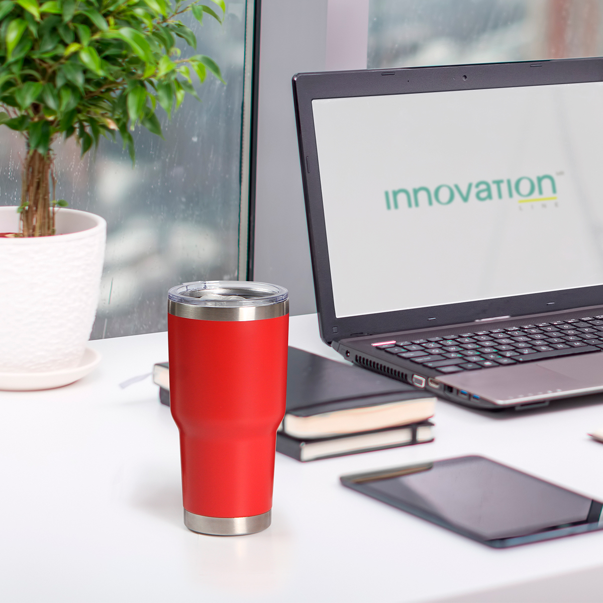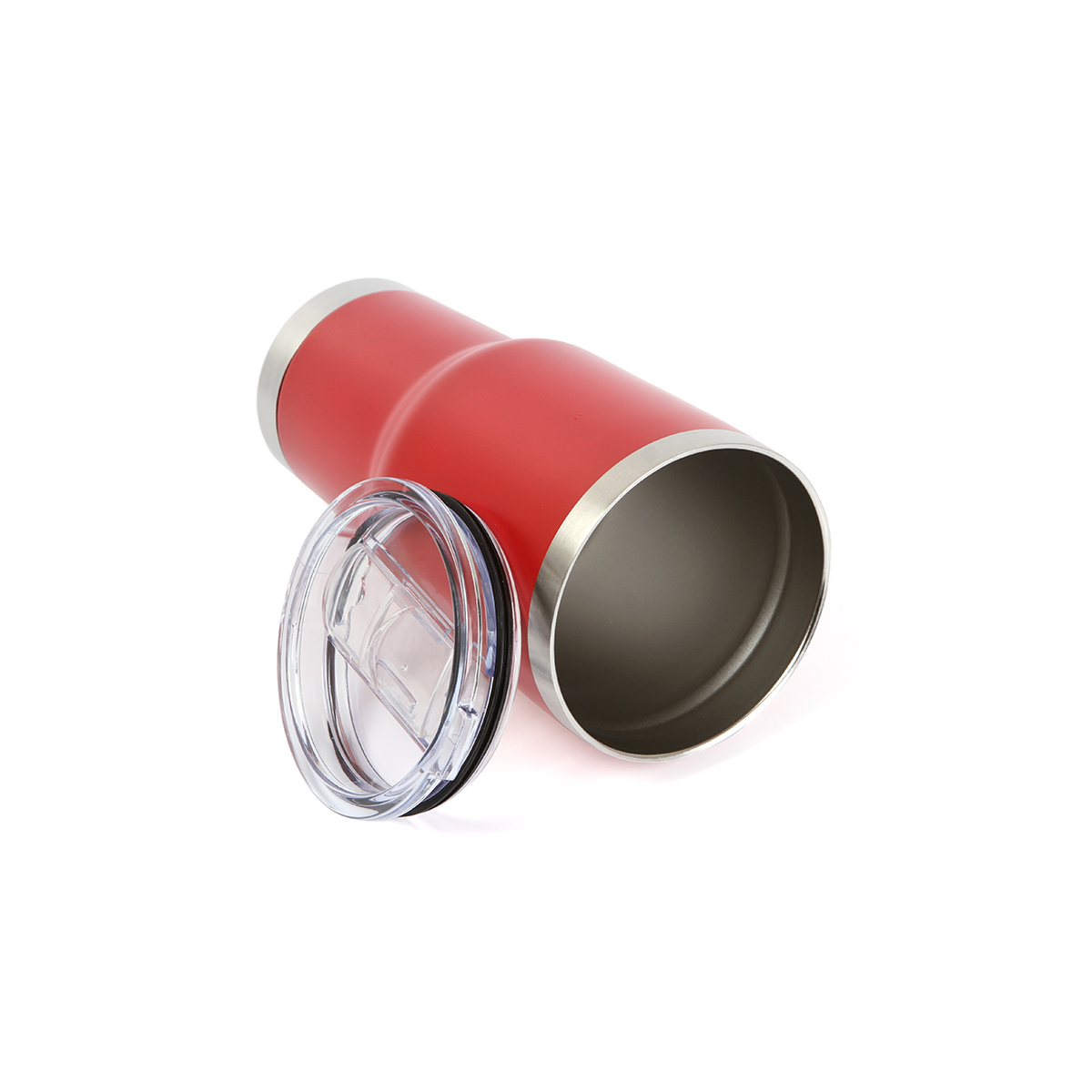 Termo Kharrara. - Termo de acero inoxidable doble pared acabado mate y detalles plateados en filo y base, con tapa deslizable de plástico transparente. Fabricado en materiales de grado alimenticio, mantiene bebidas frías o calientes por un largo tiempo. No usar en microondas. Capacidad de 567 ml. Incluye caja de cartón individual.