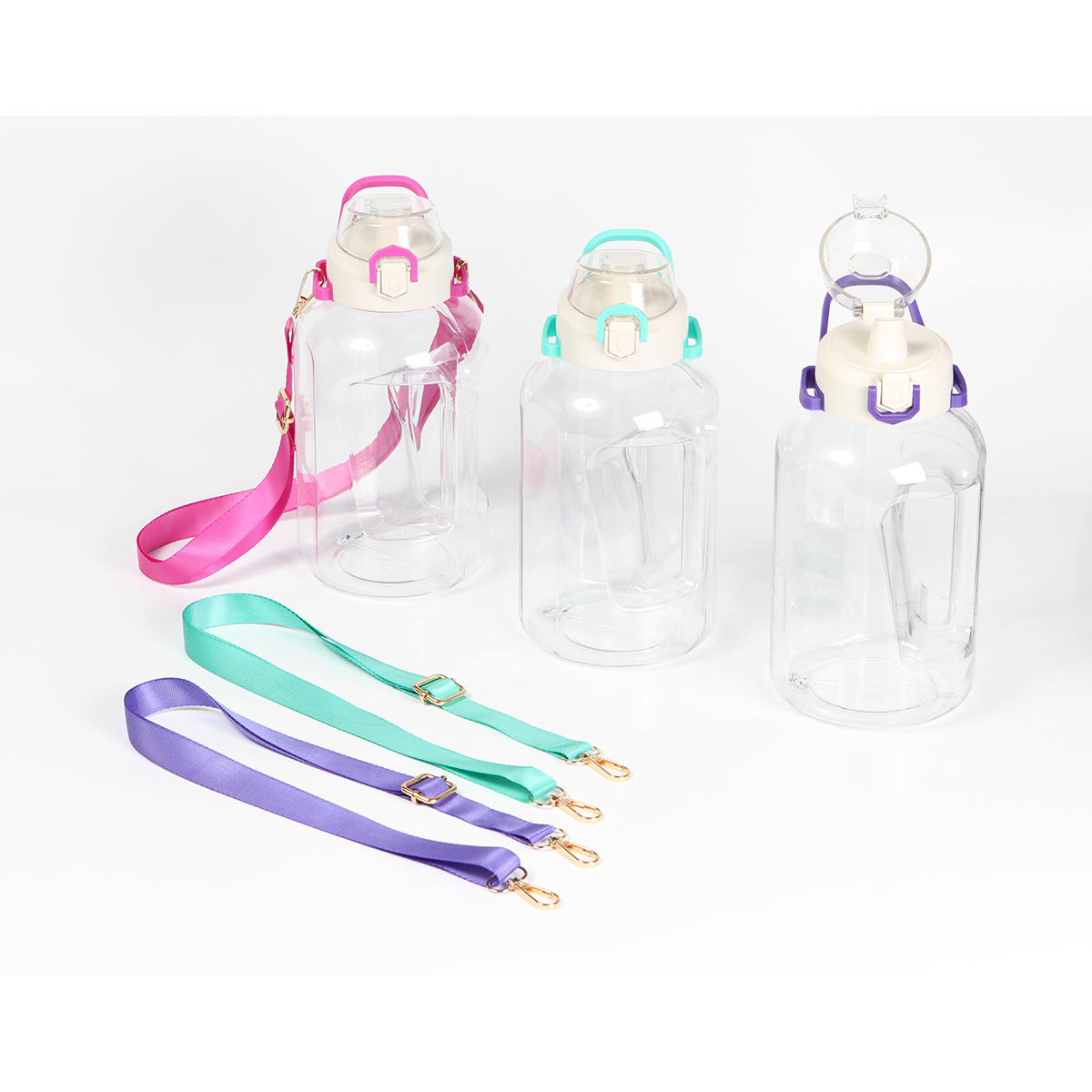 Botella Bután. - Botella jumbo de plástico transparente con capacidad de 1.4 litros (48 oz), tapa con botón de seguridad, correa de color con arnés y agarradera, su tapa en rosca es ideal para mantener seguro el liquido de la botella, y su correa de color con arnés desmontable se puede ajustar a tu gusto .