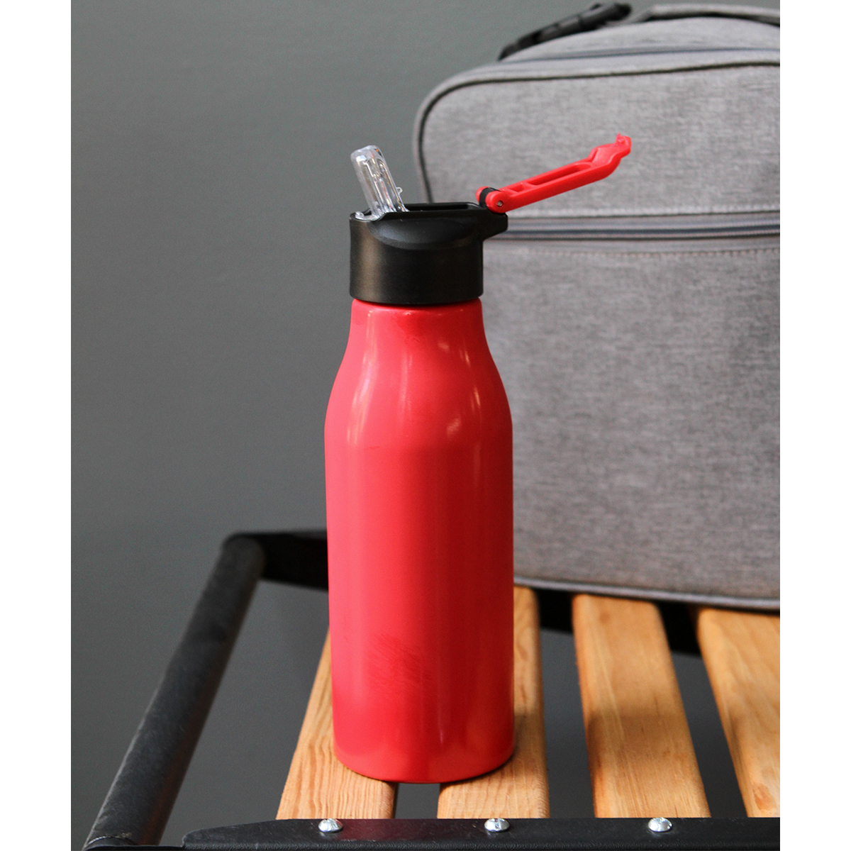 Botella Dongola. - Botella de aluminio con revestimiento de color en el exterior y terminado brillante. Tapa de plástico, el popote puede contraerse lo que ayuda a mantener seguro el líquido de la botella. Capacidad de 650 ml. (22 onzas). Fabricado en materiales de grado alimenticio libre de BPA.