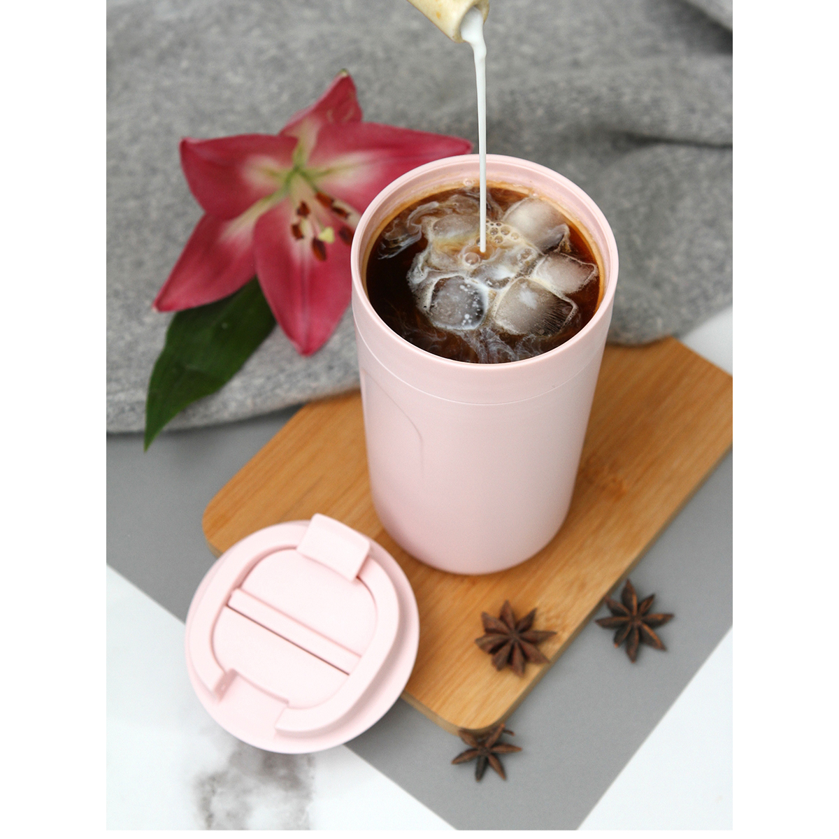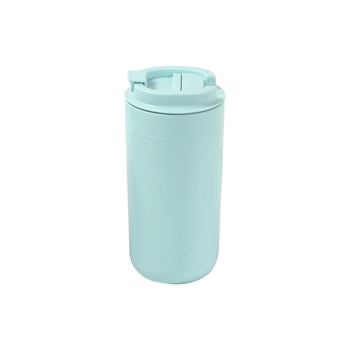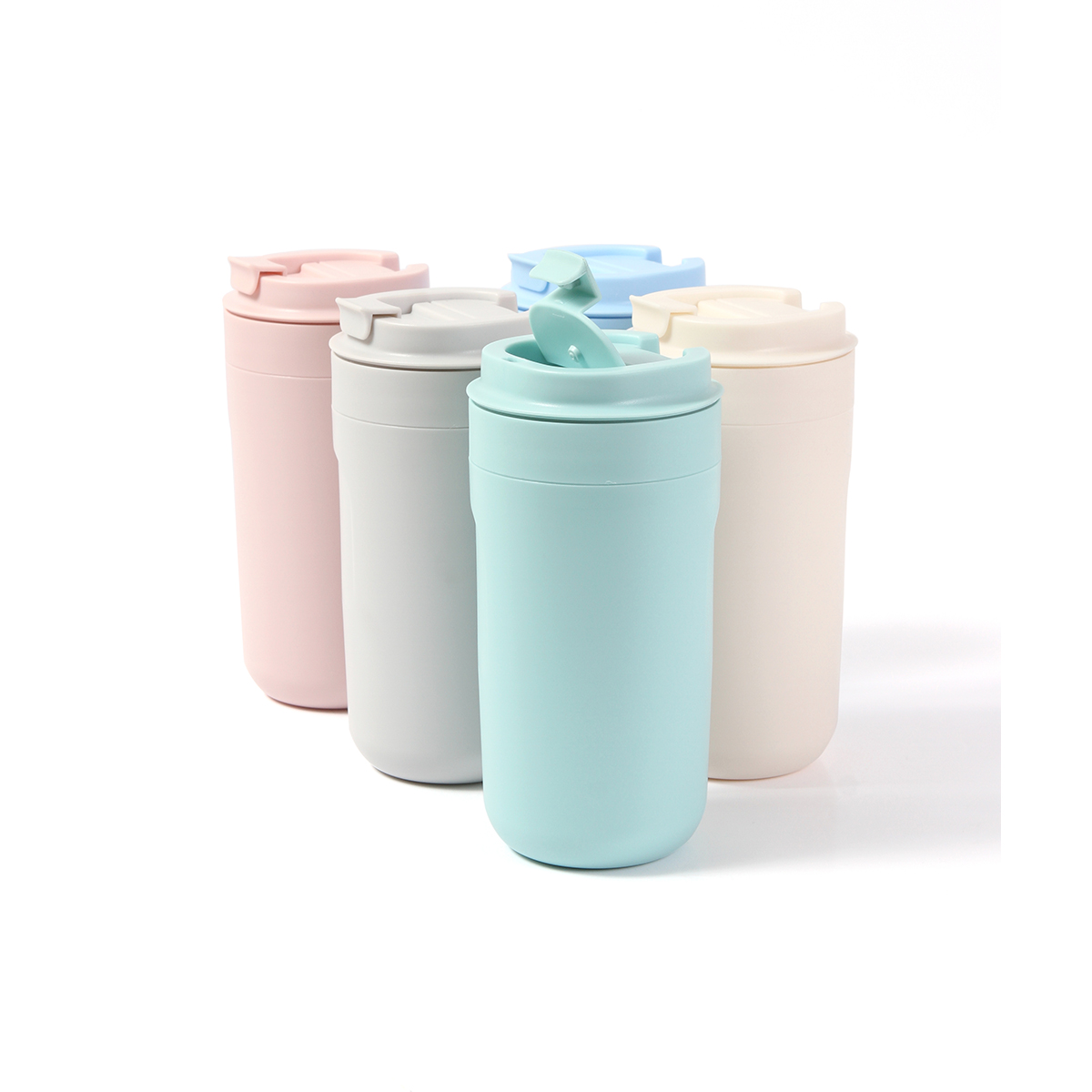 SOLEI Vaso de plástico con doble pared, tapa enroscable y acabado rubber, inclu...
