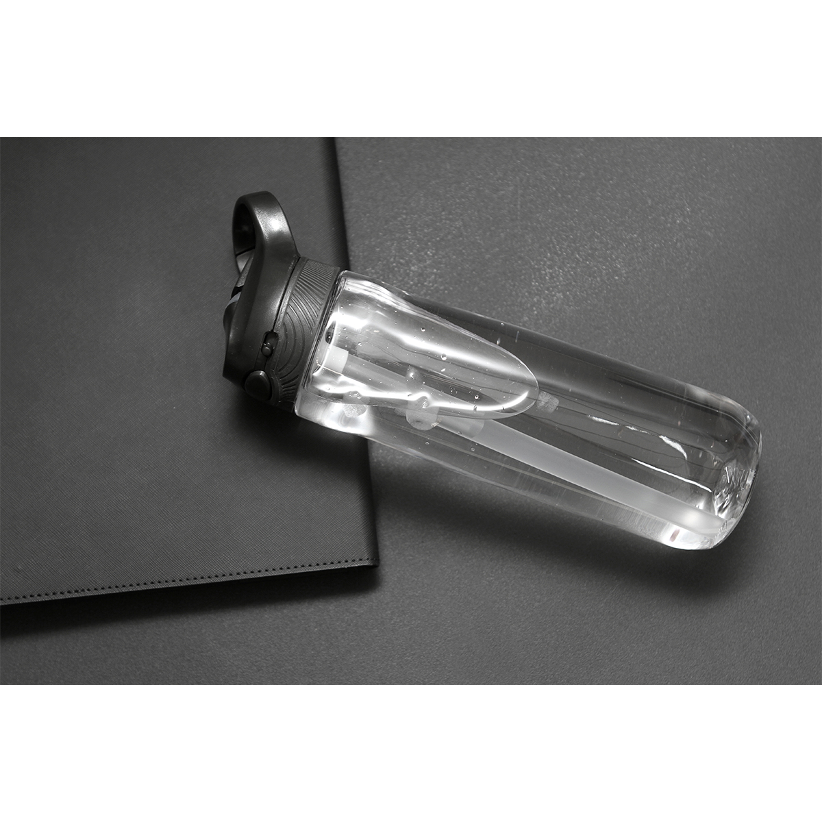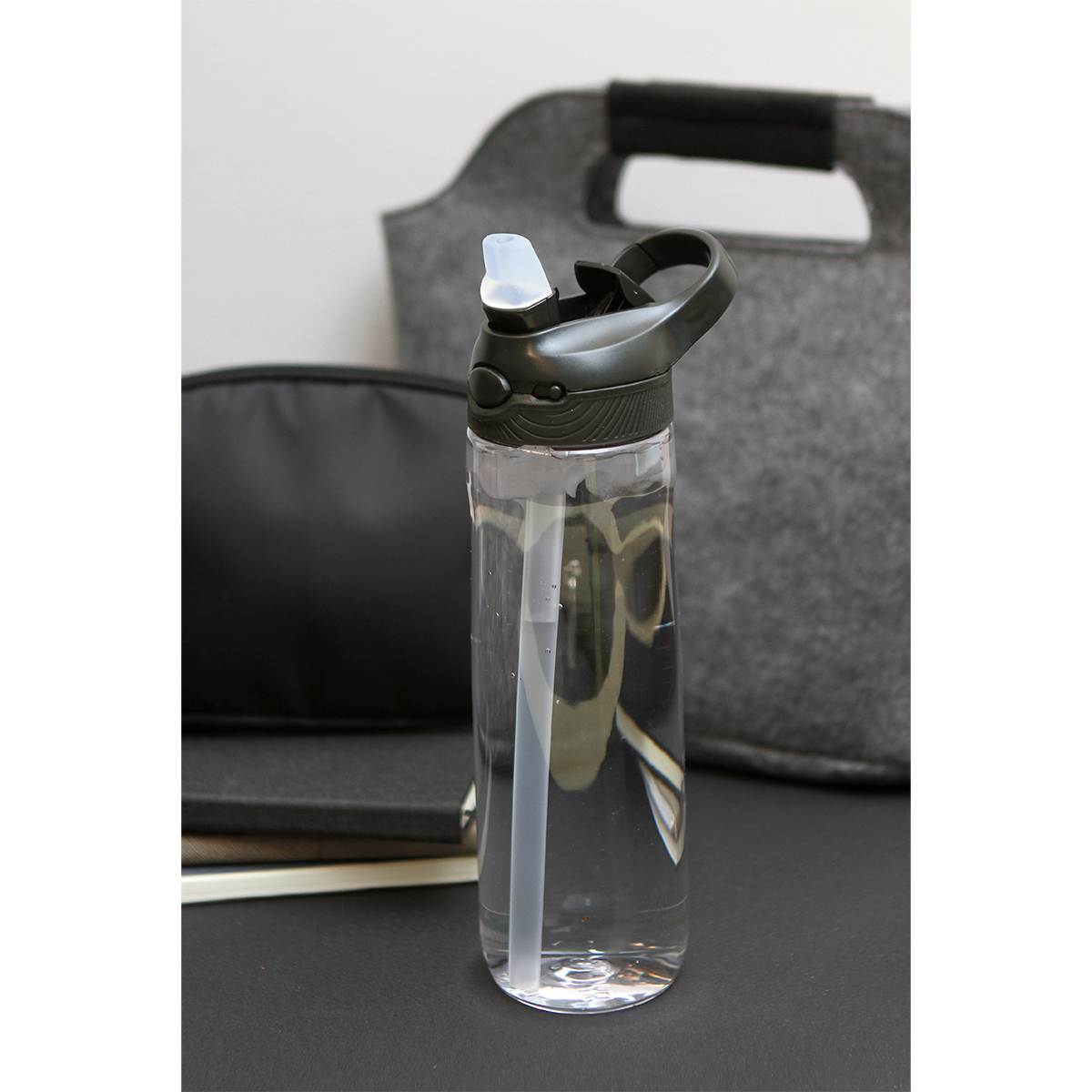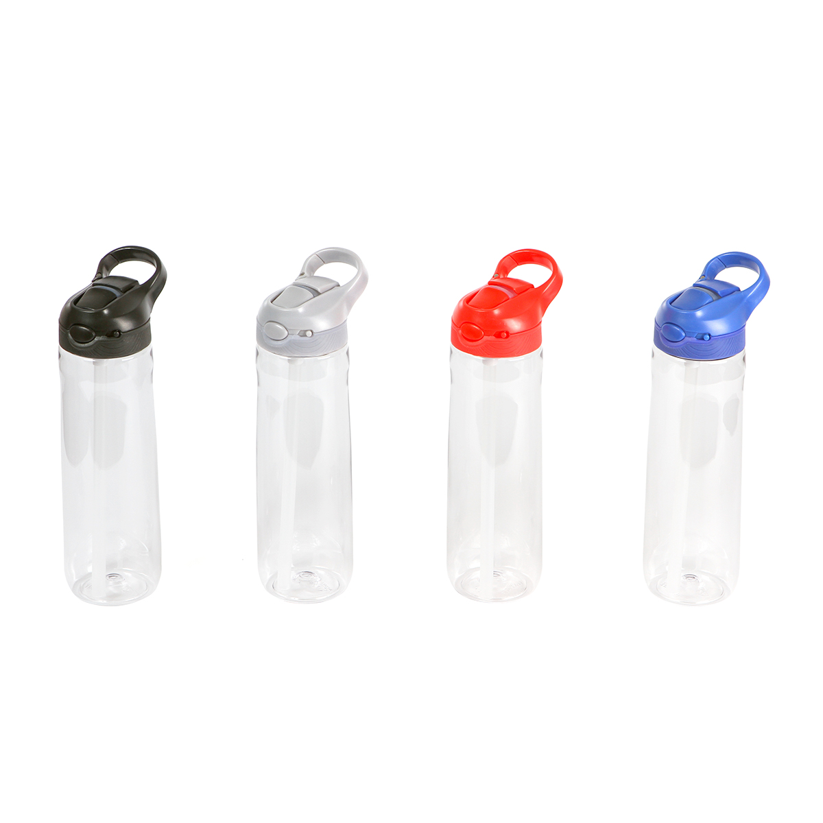 Botella Oland. - Botella con cuerpo transparente y tapa con bloqueo de seguridad, cuenta con boquilla de silicona y agarradera de color, fabricada en tritán y ABS. Capacidad de 750 ml, peso de 183 g.