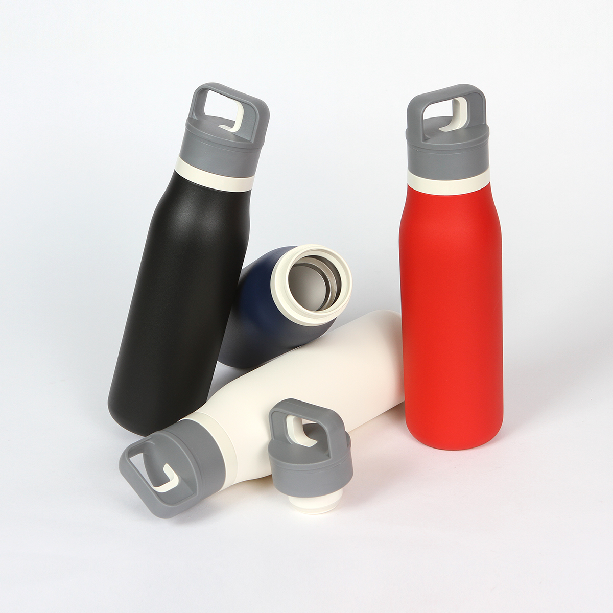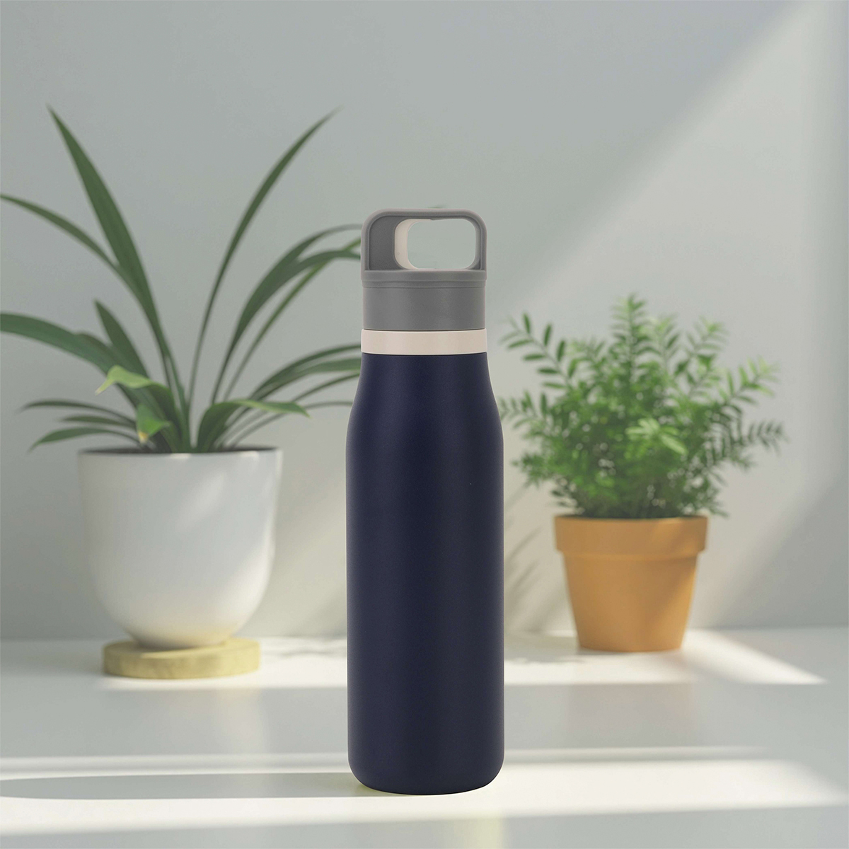 Termo Coruña. - Termo de acero inoxidable doble pared, con correa de TPR, tapa ...