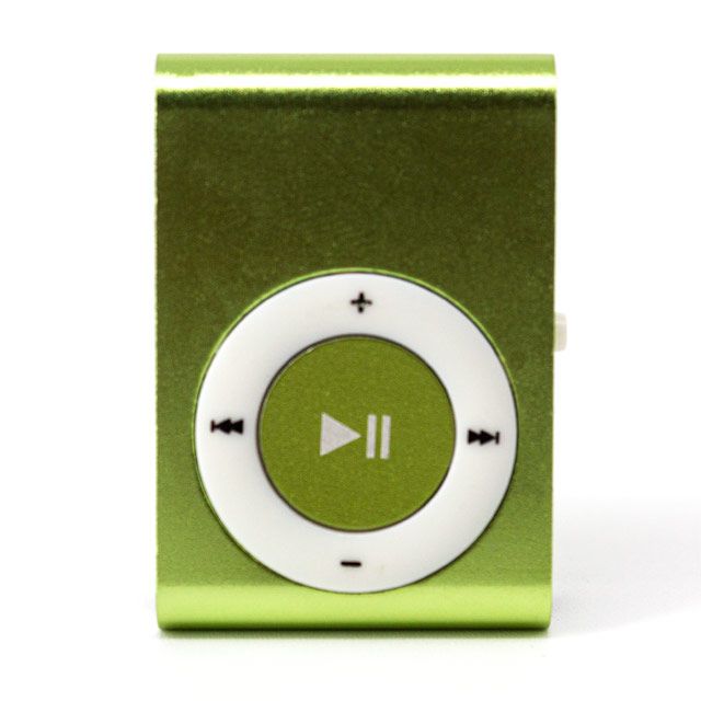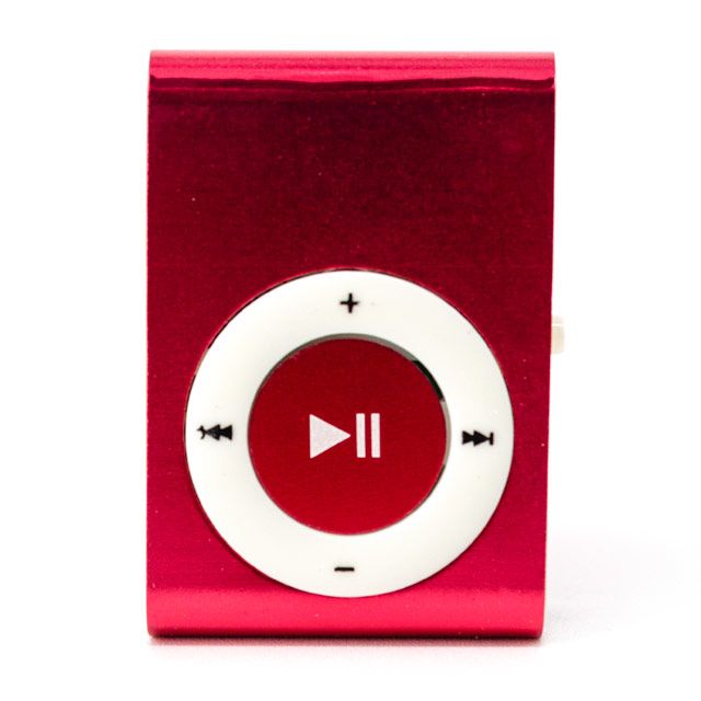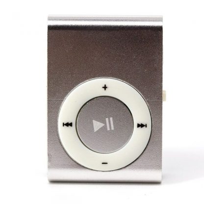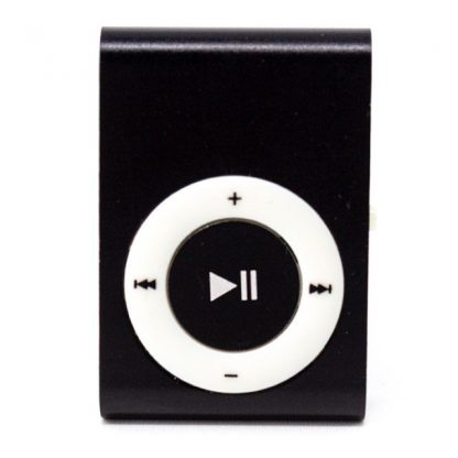Reproductor MP3 con pinza ajustable. Con Salida de audio 3.5 mm. Puerto USB 2.0 tipo Mini-B. Incluye Audífonos. No incluye tarjeta micro SD