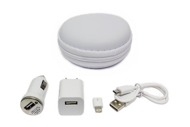 KIT CARGADOR para casa y auto. Incluye estuche del mismo color de los adaptadores. Incluye cable adaptador para iOS y Android.
