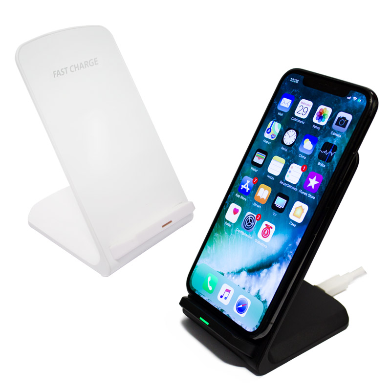 CARGADOR WIRELESS Cargador Inalámbrico de base inclinada y antiderrapante, cuenta con LED de aviso de carga. Incluye cable USB. *Parche QI se vende por separado.