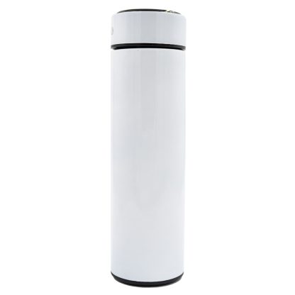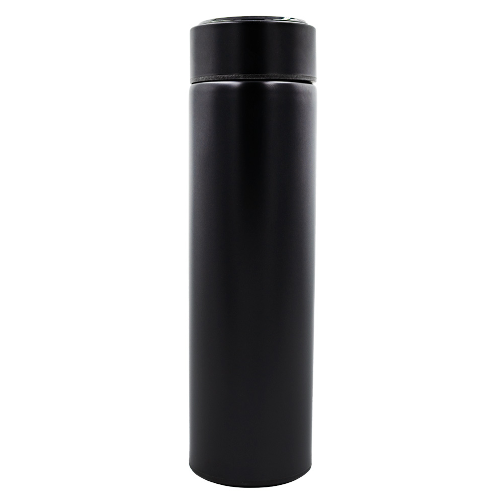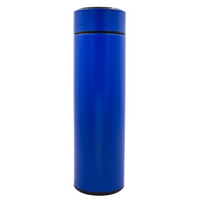 Elegante termo con capacidad de 500 ml fabricado en acero inoxidable grado alimenticio recubierto con pintura para un mejor agarre (excepto color plata). Cuenta con una pantalla digital en la tapa que muestra la temperatura real del líquido (se enciende al tocar la superficie superior de la tapa).