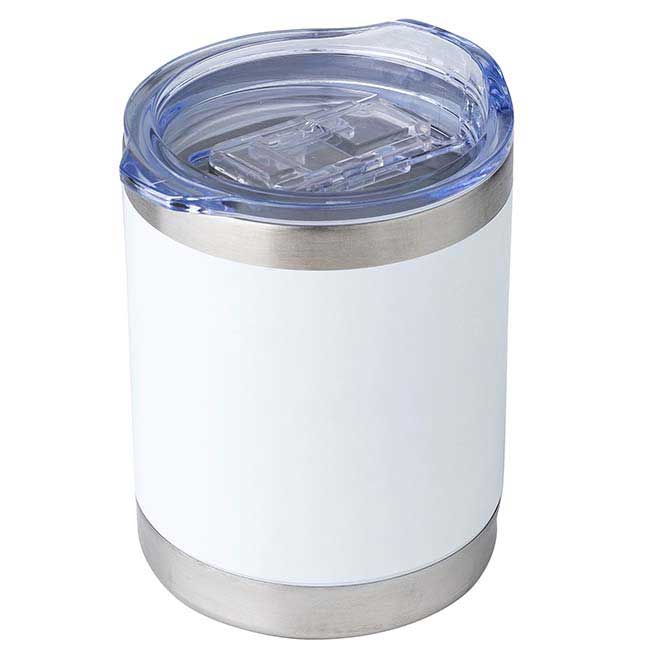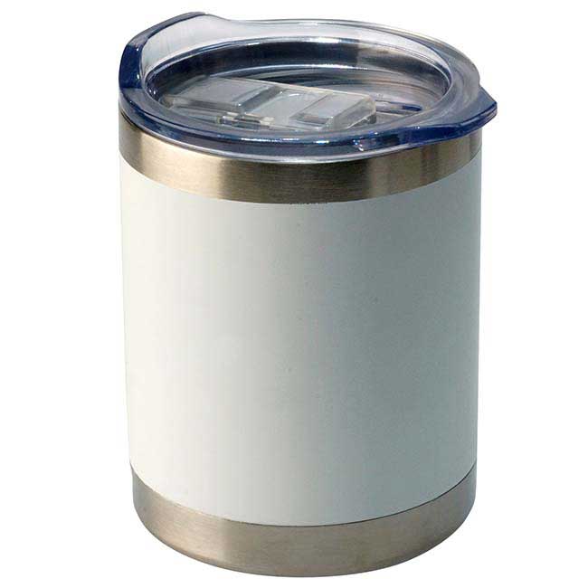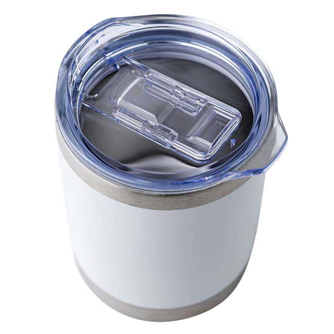 Tarro Encino Capacidad: 350 ml. Sistema de doble pared al vacío. Tapa de plástico con cierre deslizable. Colores: Blanco y Negro.