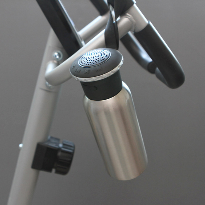 Termo con bocina Belluno. - Termo de acero inoxidable doble pared con bocina con conexión de sonido sin cables, con un alcance máximo de 9.9 M. y radio FM en la tapa , fabricado en materiales de grado alimenticio, mantiene bebidas frías o calientes por un largo tiempo, no usar en microondas. Capacidad de 460 ml (14 oz). Incluye caja de cartón individual.