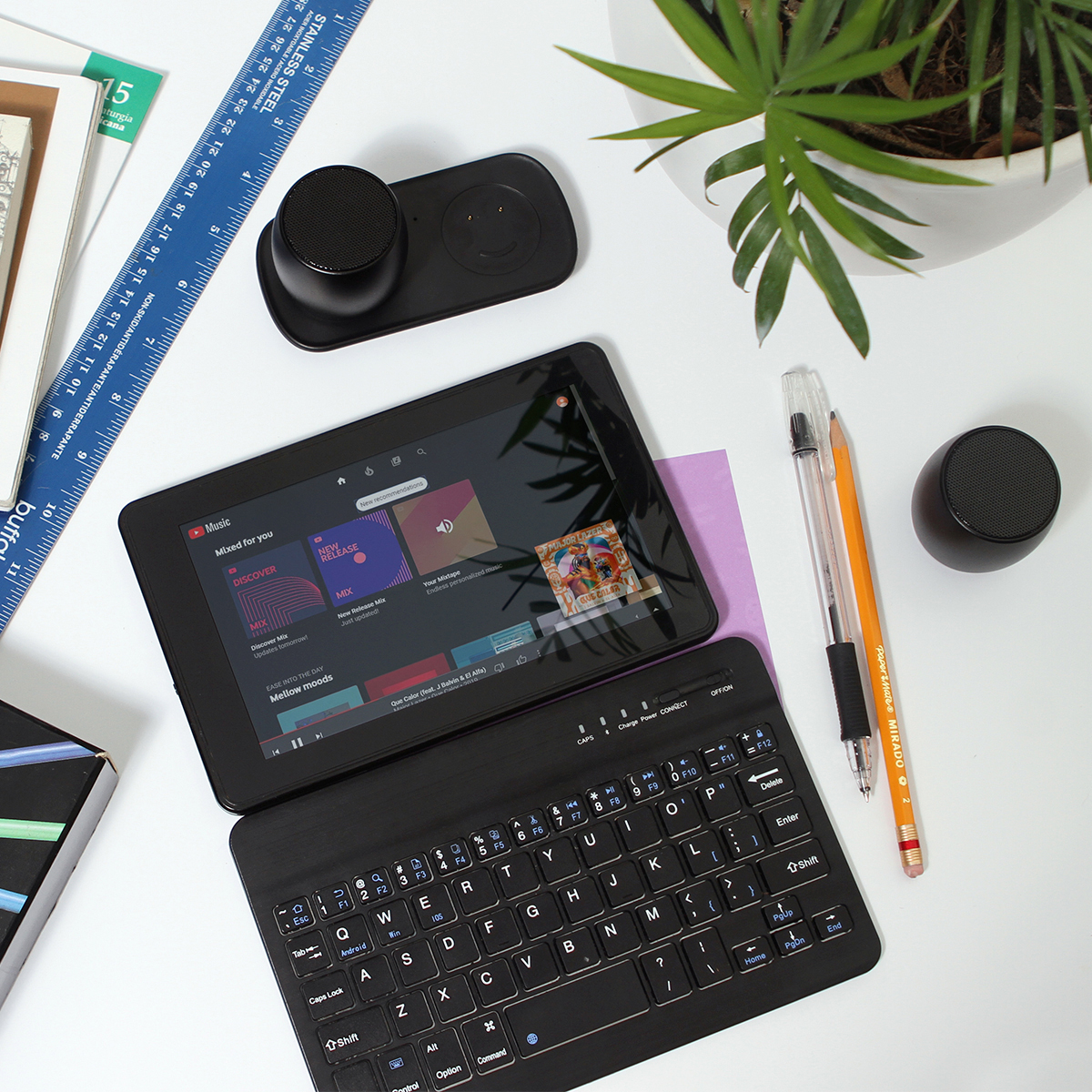 Set de Bocinas Terme. - Set de bocinas con conexión de sonido sin cables, fabricadas en aleación de aluminio y ABS, con sistema TWS (True Wireless Stereo), tecnología que permite emparejar dos dispositivos de audio a través de la conexión de sonido sin cables; y de esta manera poder transmitir de manera separada el canal izquierdo y derecho para conseguir un sonido estéreo. Incluye base para carga, cable USB y caja de cartón individual.
