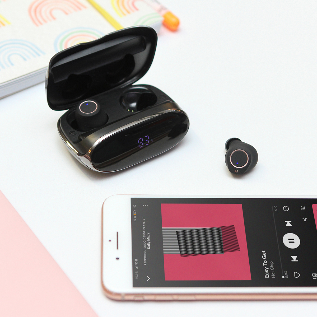 Audífonos Lasi. - Audífonos con conexión de sonido sin cables, con estuche de carga fabricado en plástico ABS, con indicador de nivel de batería en la parte frontal. Carga a través de cable USB (incluido). Incluye caja de cartón individual.