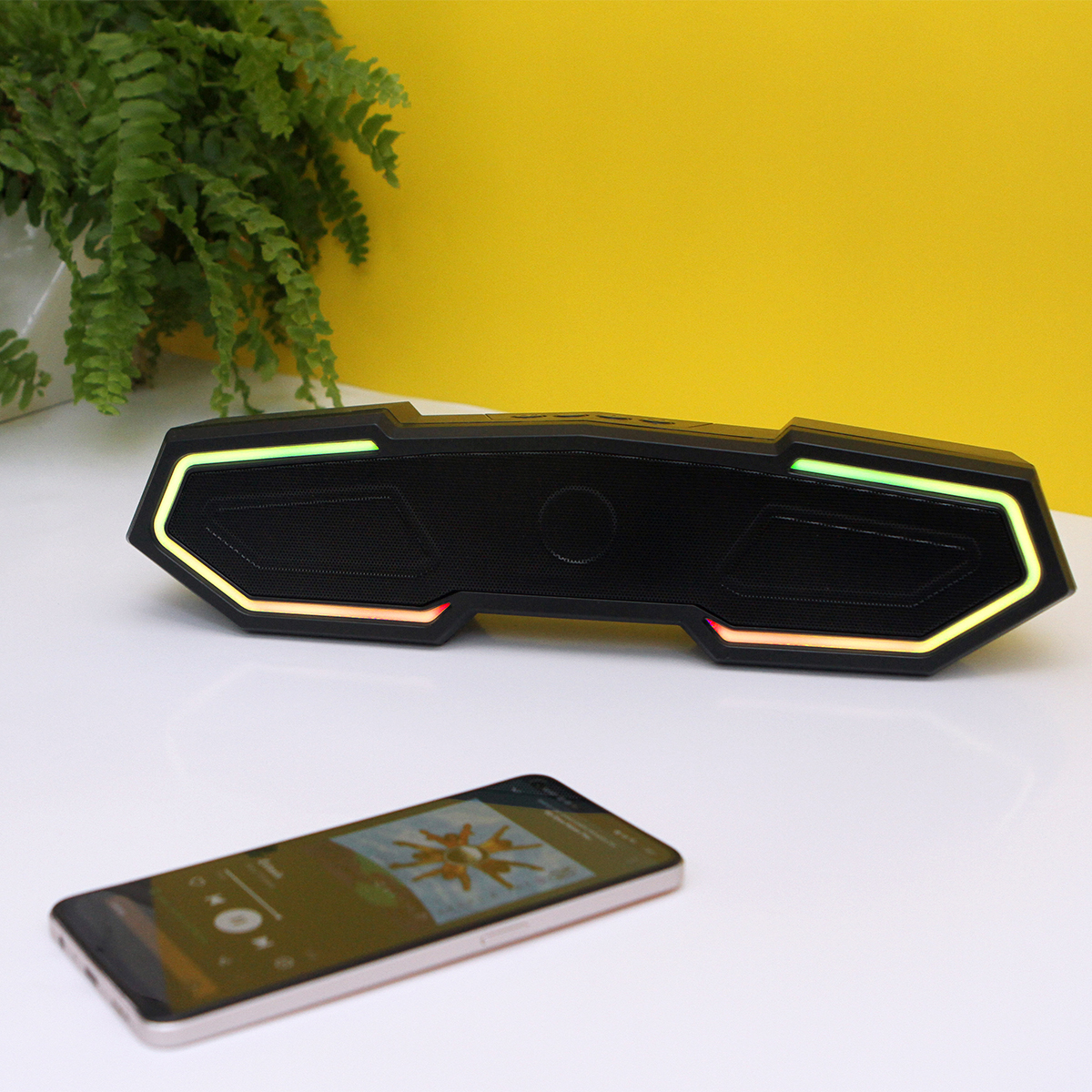 Bocina Farnese. - Bocina con conexión de sonido sin cables, 4 botónes en la parte superior para controlar el volumen de la música o pasar a otra canción, con radio y luz LED (la cual puede cambiar de color), con ranura para tarjeta TF y entrada para memoria USB ( el cual ya viene incluido). Con caja de cartón individual.