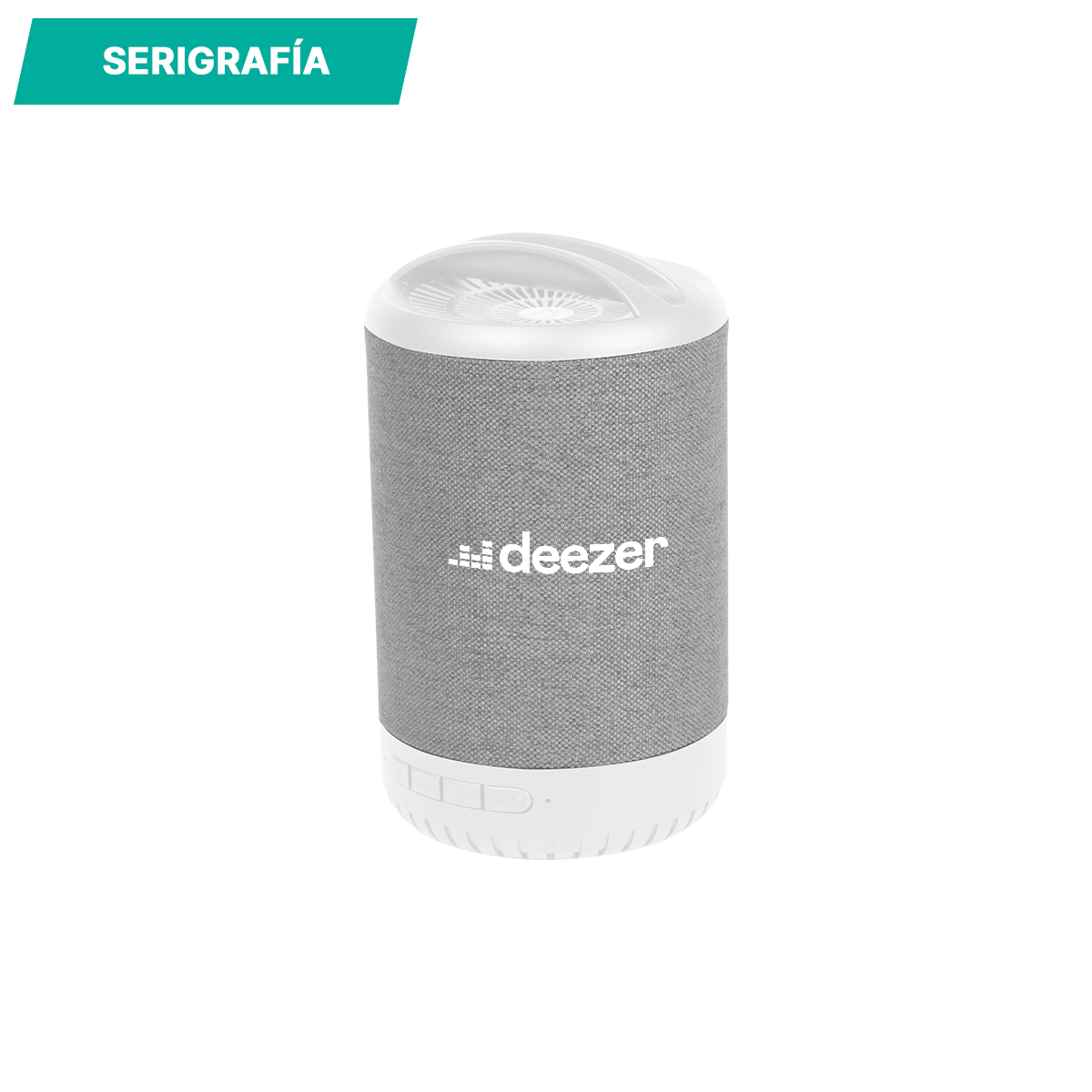 Bocina Baratti. - Bocina con conexión de sonido sin cables, radio FM, entrada para tarjeta TF y memoria USB, fabricada en plástico ABS con cubierta de tela y soporte para celular en la parte superior. En la parte inferior se encuentran 4 botones para manipular la musica, carga a través de cable USB (incluido). Incluye caja de cartón individual.