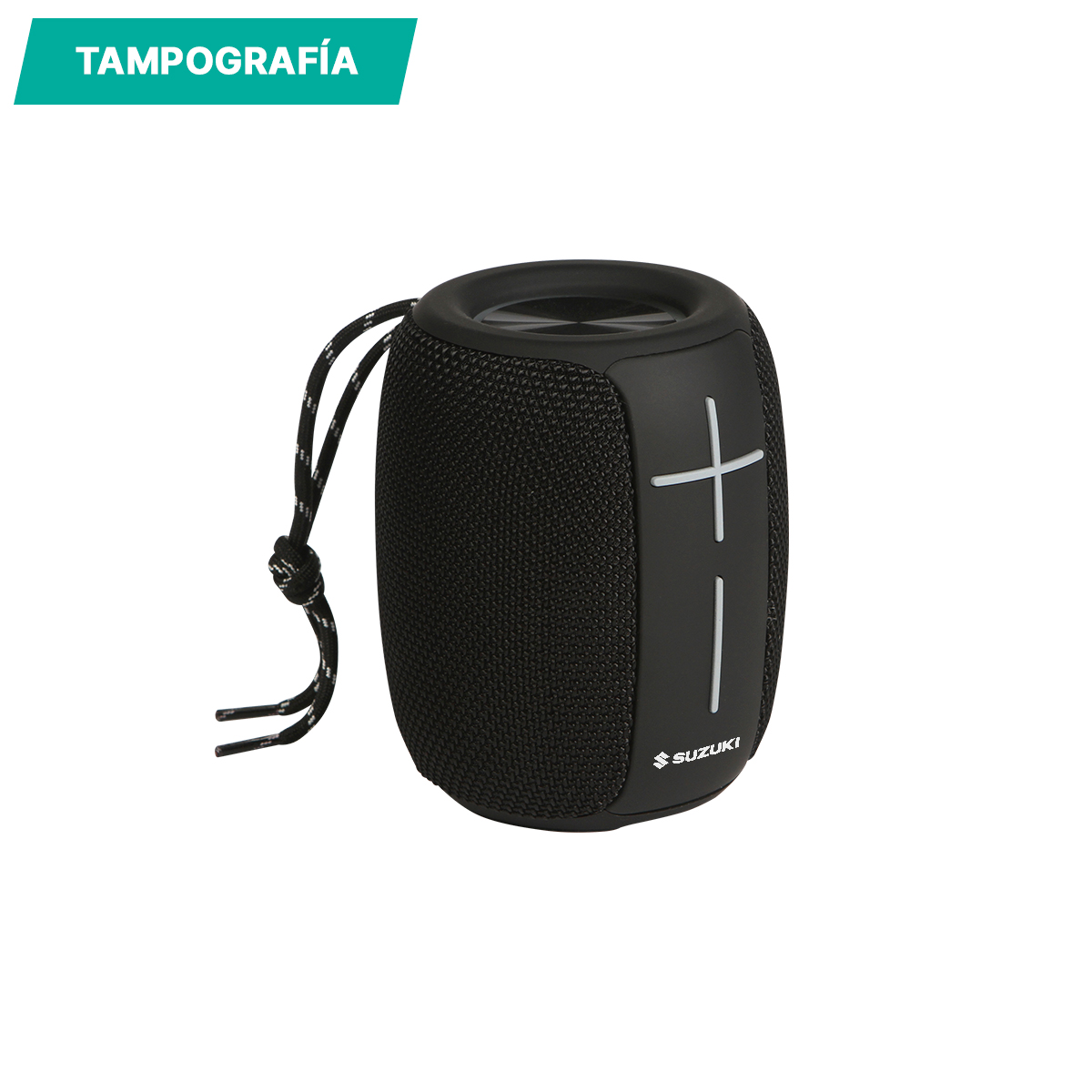 Bocina Fivizzano. - Bocina con conexión de sonido sin cables a prueba de agua fabricada en plástico ABS y metal, con cubierta de tela, acabado mate, cordón y luz RGB 3 modos, dispositivo manos libres, radio FM con sintonizador, ranura para tarjeta TF, ranura USB e IPX4 a prueba de agua. Incluye cable de carga USB y caja de cartón individual.
