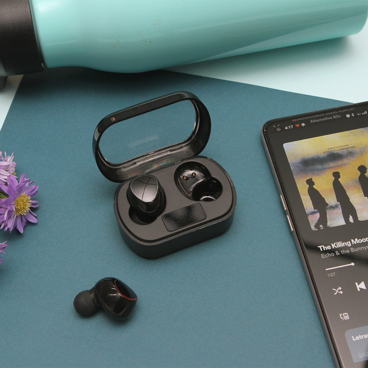 Audífonos Cannai. - Audífonos con conexión de sonido sin cables, sonido estéreo, fabricados en plástico, con estuche de carga. conexión inalámbrica V5.3, distancia de transmisión óptima de hasta 9.9 m. Duración de 4 horas de reproducción. Interfaz de carga tipo USB-C.