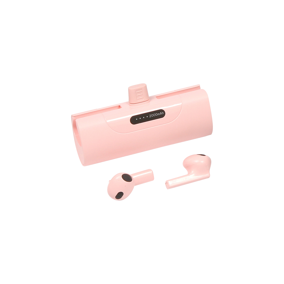 Audífonos inalámbricos Sens. - Audífonos inalámbricos con power bank fabricados en plástico ABS batería principal 1,300 mAh y batería de los audífonos 25 mAh. Tiempo de carga de los audífonos 1 hora, tiempo de reproducción a volumen medio de 3 a 4 horas. Distancia de transmisión libre de obstáculos 10 metros aproximadamente. Puerto de carga tipo C.