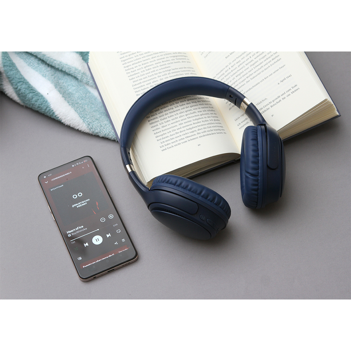 Audífonos Hastings. - Audífonos inalámbricos con diseño de diadema, con una distancia de transmisión de 10 metros sin obstáculos. Tiempo de reproducción de hasta 55 horas en volumen medio. Tiempo de carga de 2.5 horas con puerto de carga tipo-C. Cuenta con función de tarjeta micro SD, modo FM, puerto auxiliar, conexión inalámbrica y botones de control, asistente de voz y receptor de llamadas.