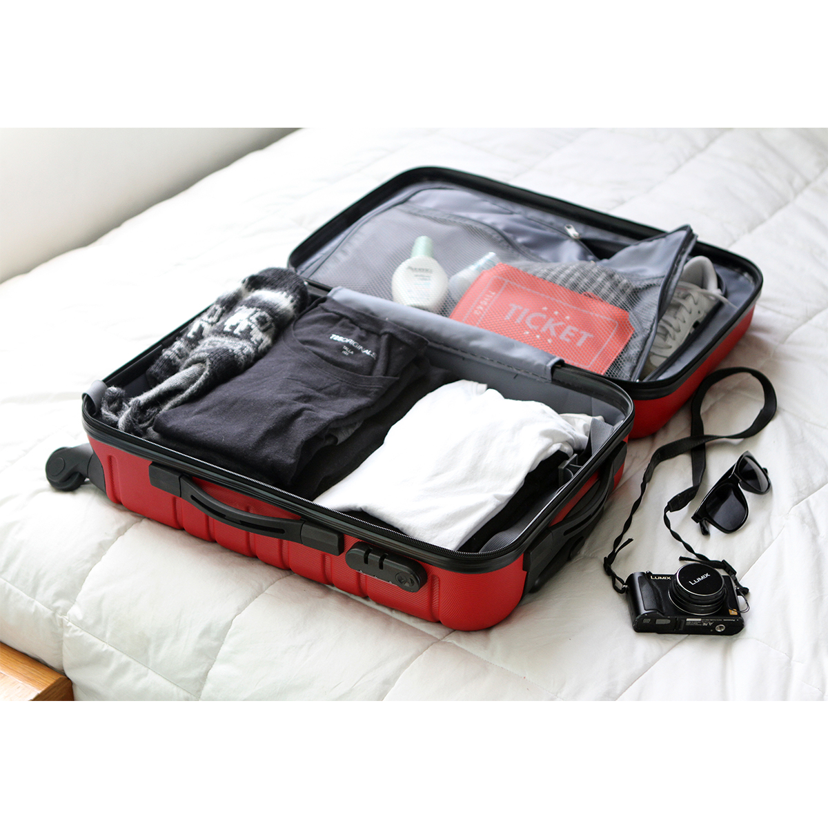 Maleta rígida de viaje. - Maleta rígida de viaje con exterior fabricado en plástico ABS e interiores en poliéster, con mango retráctil de aluminio, 4 ruedas resistentes, 2 agarraderas para poder cargarla horizontal o verticalmente, chapa de seguridad con 3 dígitos de combinación y placa metálica para grabado. Capacidad de carga de 10 kg.