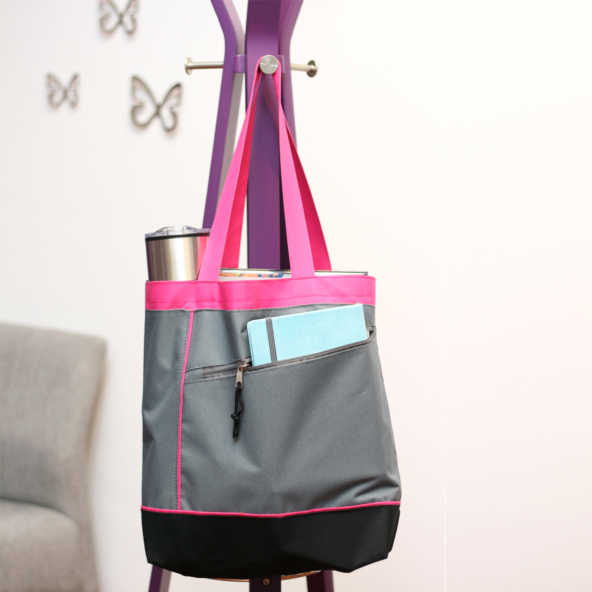 Bolsa multiusos Albany. - Bolsa multiusos con bolsa al frente de cierre, fabricada en poliéster y con 2 asas de gran resistencia.