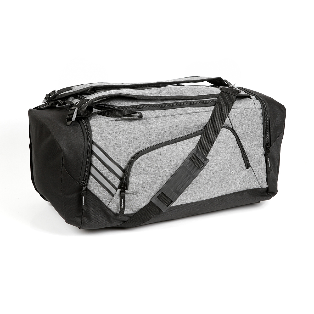Maleta Parma. - Maleta deportiva fabricada en poliéster, con 1 bolsillo frontal, 2 laterales, correa de hombro y cintas (tipo mochila) para colgar en espalda o para cargarla con las manos. Esta maleta deportiva es la opción ideal para aquellos que buscan un equilibrio perfecto entre practicidad y estética.