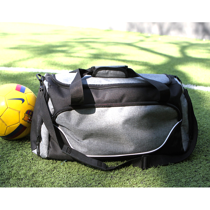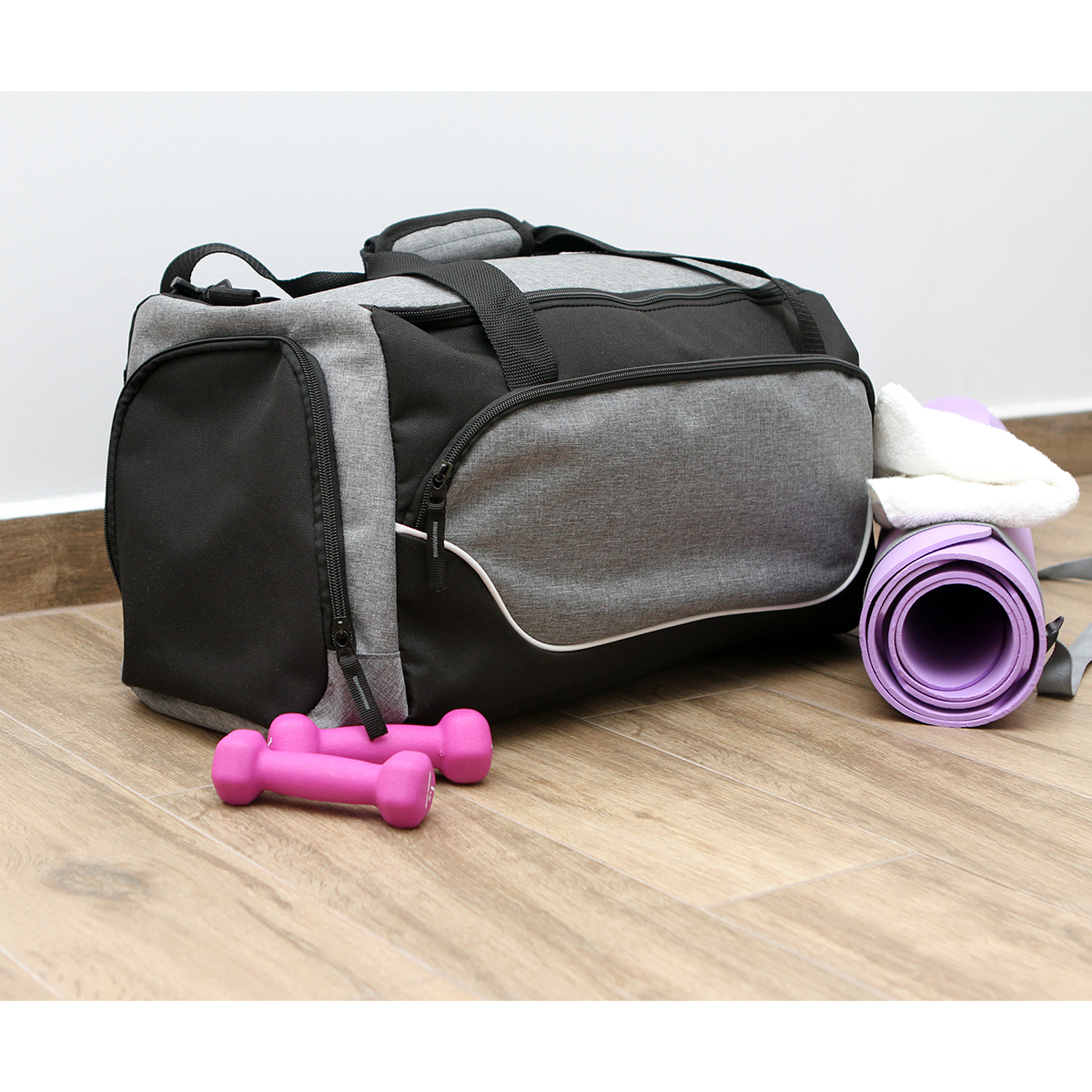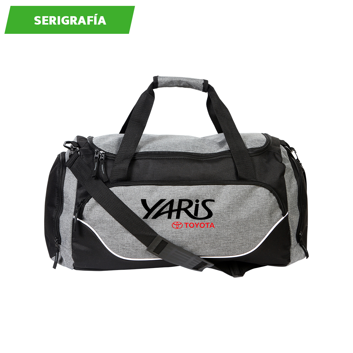 Maleta Sicilia. - Maleta deportiva con detalles negros fabricada en poliéster, con 1 bolsillo frontal, 2 laterales, correa de hombro ajustable y desmontable y agarradera de mano con asa.